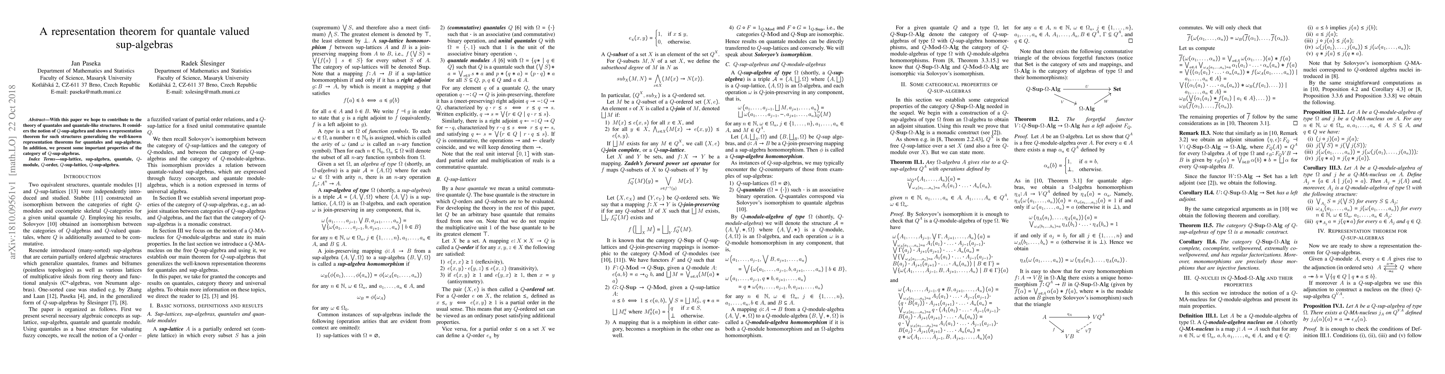 With this paper we hope to contribute to the theory of quantales and quantale-like structures. It considers the notion of $Q$-sup-algebra and shows a representation theorem for such structures generalizing the well-known representation theorems for quantales and sup-algebras. In addition, we present some important properties of the category of $Q$-sup-algebras.