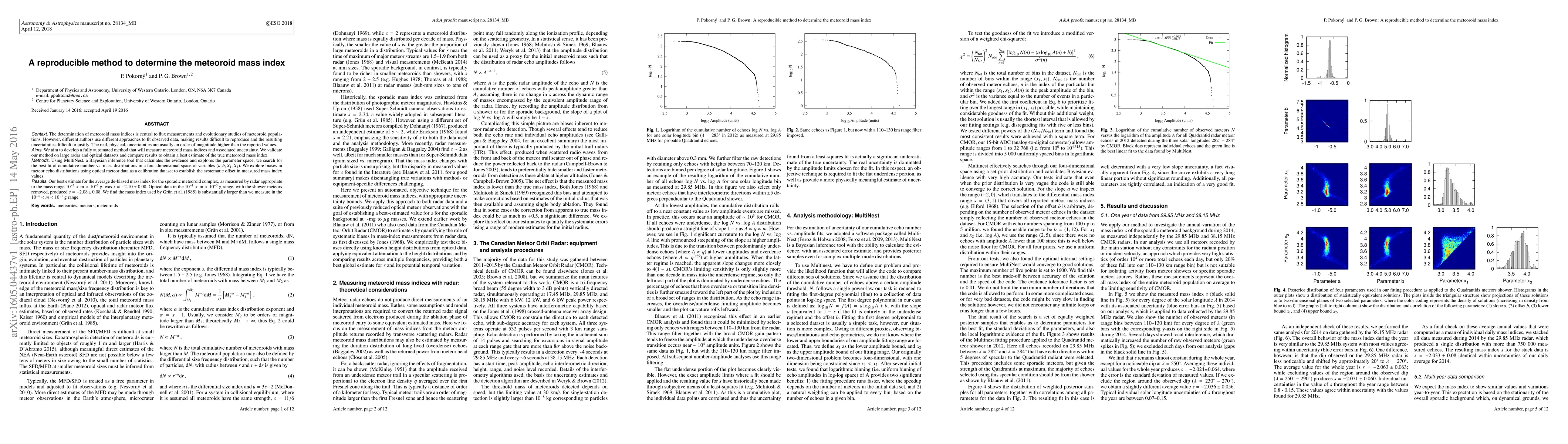 Context. The determination of meteoroid mass indices is central to flux measurements and evolutionary studies of meteoroid populations. However, different authors use different approaches to fit observed data, making results difficult to reproduce and the resulting uncertainties difficult to justify. The real, physical, uncertainties are usually an order of magnitude higher than the reported values. Aims. We aim to develop a fully automated method that will measure meteoroid mass indices and associated uncertainty. We validate our method on large radar and optical datasets and compare results to obtain a best estimate of the true meteoroid mass index. Methods. Using MultiNest, a Bayesian inference tool that calculates the evidence and explores the parameter space, we search for the best fit of cumulative number vs. mass distributions in a four-dimensional space of variables ($a,b,X_1,X_2$). We explore biases in meteor echo distributions using optical meteor data as a calibration dataset to establish the systematic offset in measured mass index values. Results. Our best estimate for the average de-biased mass index for the sporadic meteoroid complex, as measured by radar appropriate to the mass range $10^{-3} > \mathrm{m} > 10^{-5}$ g, was $s=-2.10 \pm 0.08$. Optical data in the $10^{-1} > \mathrm{m} > 10^{-3}$ g range, with the shower meteors removed, produced $s=-2.08 \pm 0.08$. We find the mass index used by Grun et al. 1985 is substantially larger than we measure in the $10^{-4} < m < 10^{-1}$ g range.