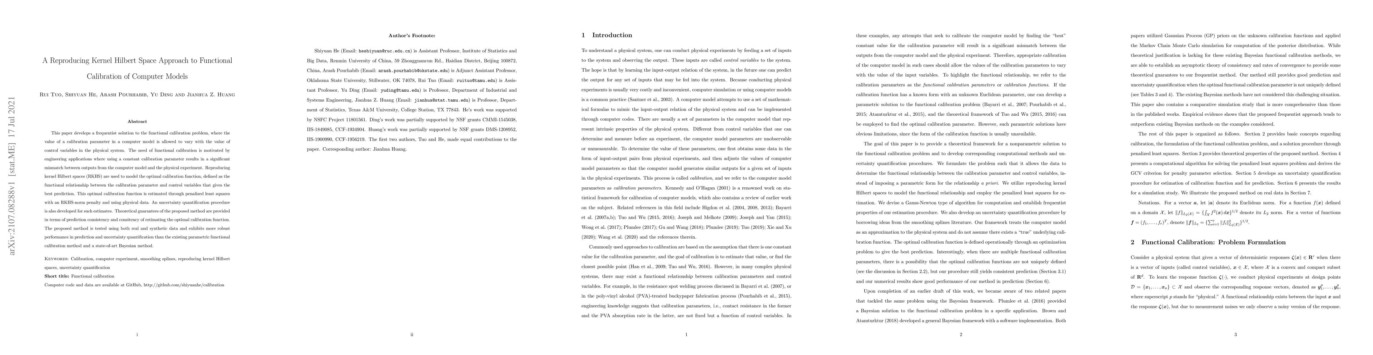 This paper proposes a frequentist method using Reproducing Kernel Hilbert Spaces (RKHS) to calibrate computer models by allowing calibration parameters to vary with control variables, addressing mismatches between model outputs and physical experiments. The method estimates the optimal calibration function and provides theoretical consistency guarantees, outperforming existing parametric and Bayesian methods in prediction and uncertainty quantification.