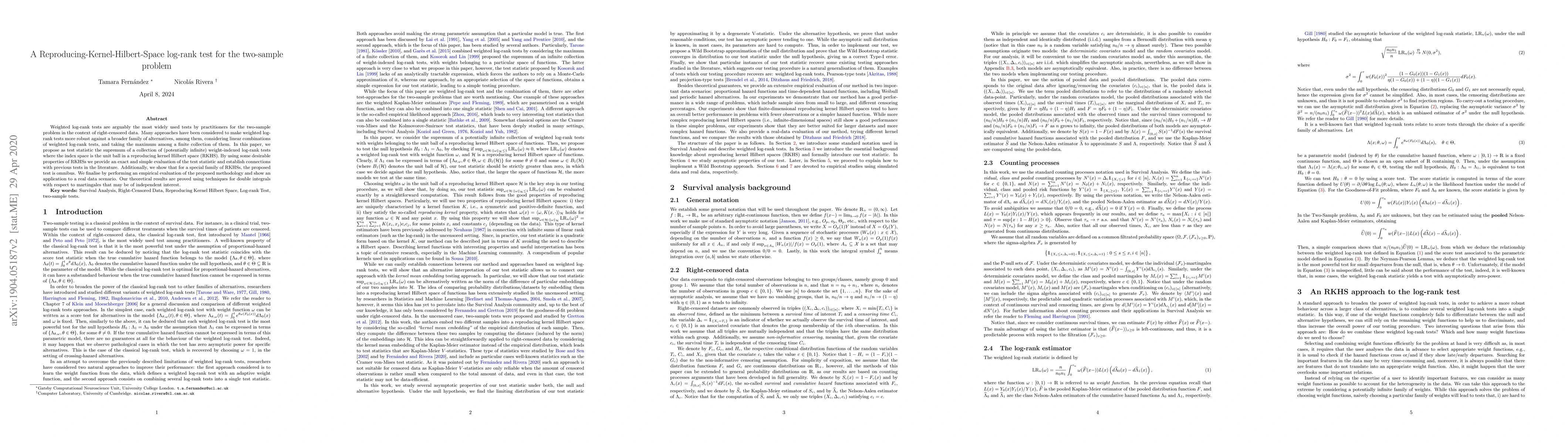 This paper proposes a novel reproducing kernel Hilbert space log-rank test for the two-sample problem with right-censored data, utilizing the supremum of weight-indexed log-rank tests. The method offers robustness and exact evaluation, and is shown to be omnibus for specific RKHSs, with empirical validation on real data.