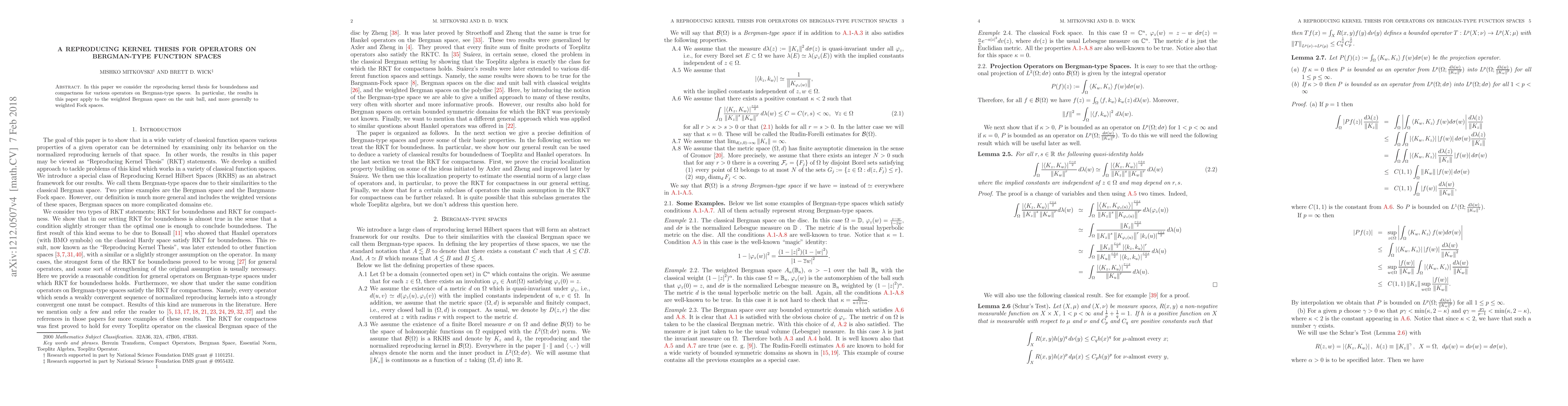 Summary: This paper explores the reproducing kernel theorem for boundedness and compactness of operators in Bergman-type spaces, including weighted Bergman spaces on the unit ball and polydisc, as well as weighted Fock spaces. The results provide insights into the structure of these function spaces.