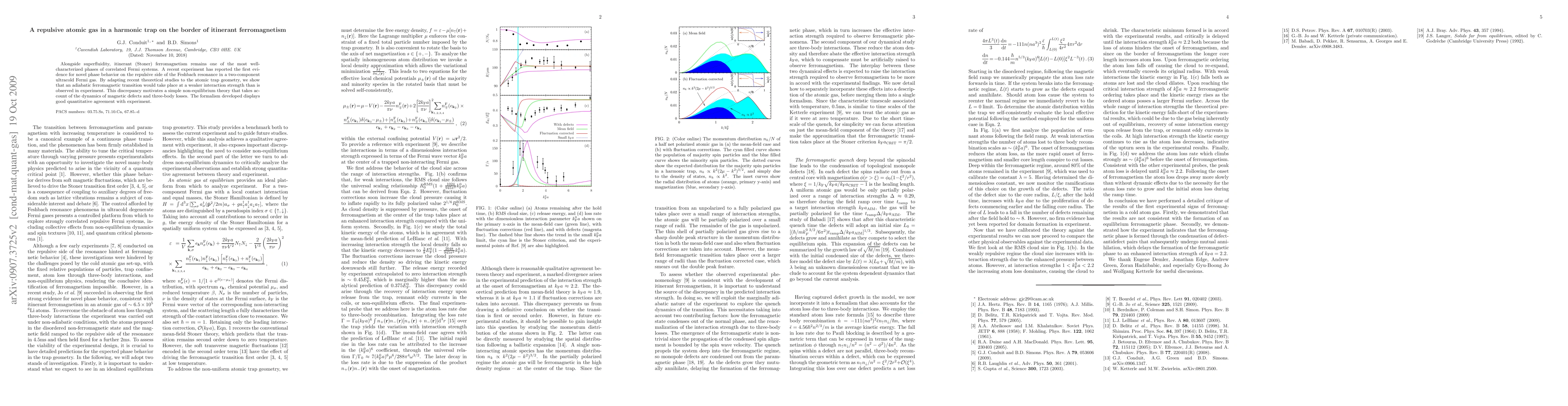 This paper investigates the novel phase behavior of a repulsive atomic gas in a harmonic trap, revealing a discrepancy between theoretical predictions and experimental observations of itinerant ferromagnetism. The authors propose a non-equilibrium theory accounting for magnetic defect dynamics and three-body losses, which aligns well with experimental results.