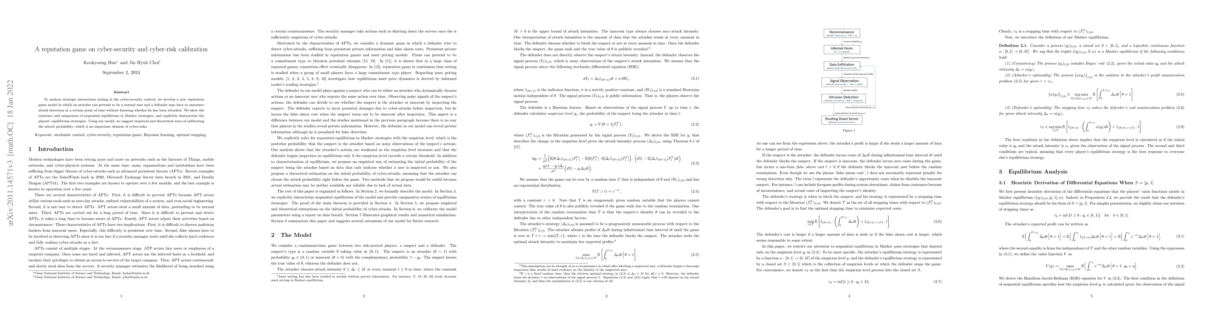 Researchers develop a new reputation game model to analyze cyber-security interactions, finding existence and uniqueness of sequential equilibrium in Markov strategies. They also propose empirical and theoretical ways to calibrate attack probabilities for better cyber-risk management.