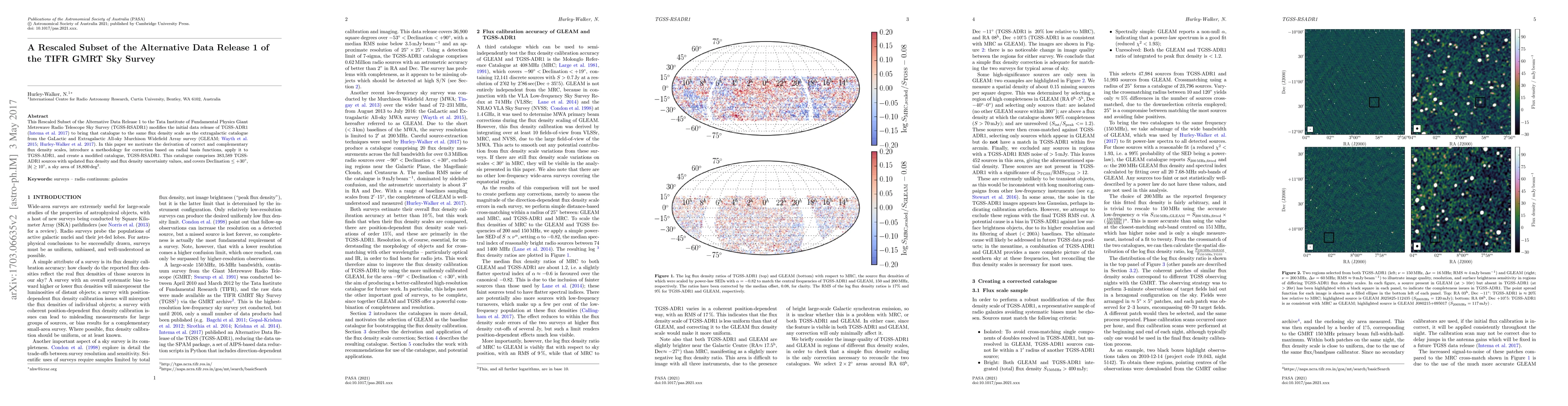 This paper recalibrates the TGSS-ADR1 radio survey data to match the flux scale of the GLEAM survey, creating a rescaled catalogue TGSS-RSADR1 with corrected flux density values for 383,589 sources, covering a specific sky region. The methodology uses radial basis functions for the necessary flux density corrections.