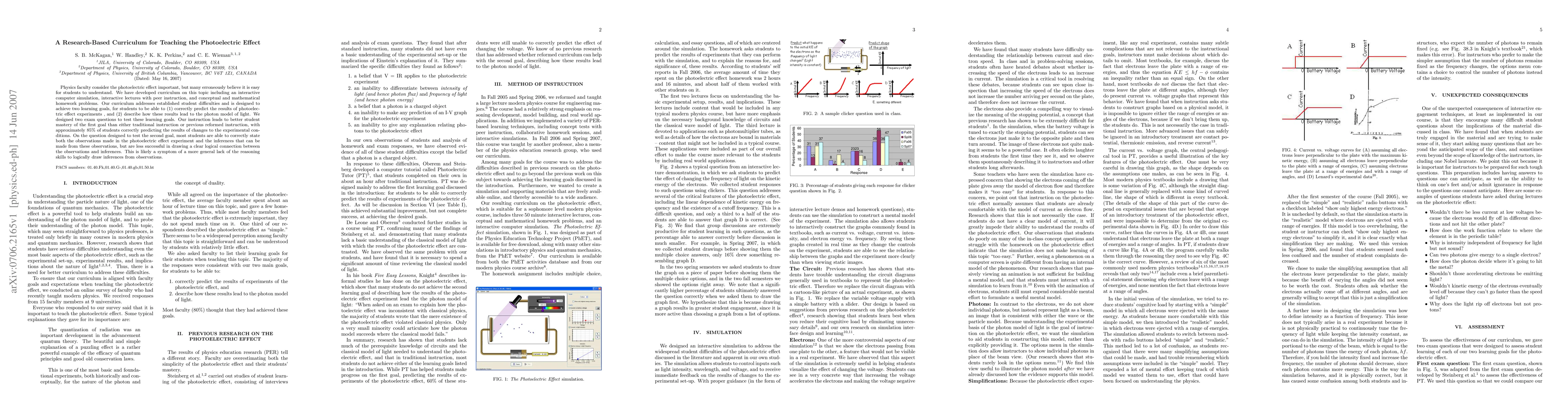 This research developed a curriculum to teach the photoelectric effect, incorporating interactive simulations and peer instruction. Students showed significant improvement in predicting photoelectric experiment results, but struggled to connect observations with the photon model of light, indicating a need for enhanced reasoning skills.