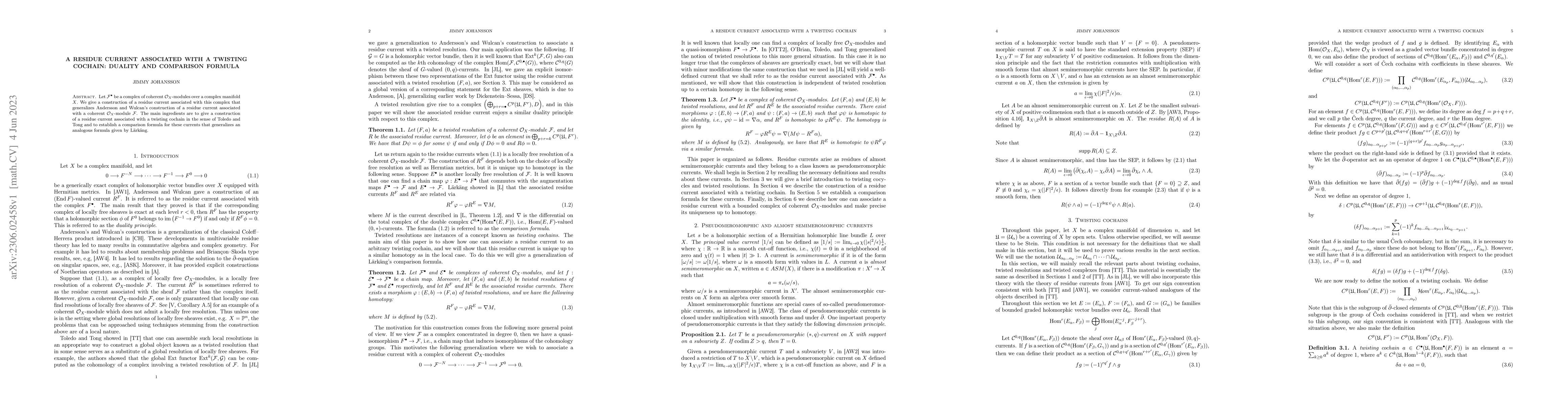 Summary: This paper constructs a residue current associated with a complex of coherent sheaves over a complex manifold, extending previous work on residue currents for single coherent sheaves. It also establishes a comparison formula for these currents, generalizing an analogous formula from Lärkäng.