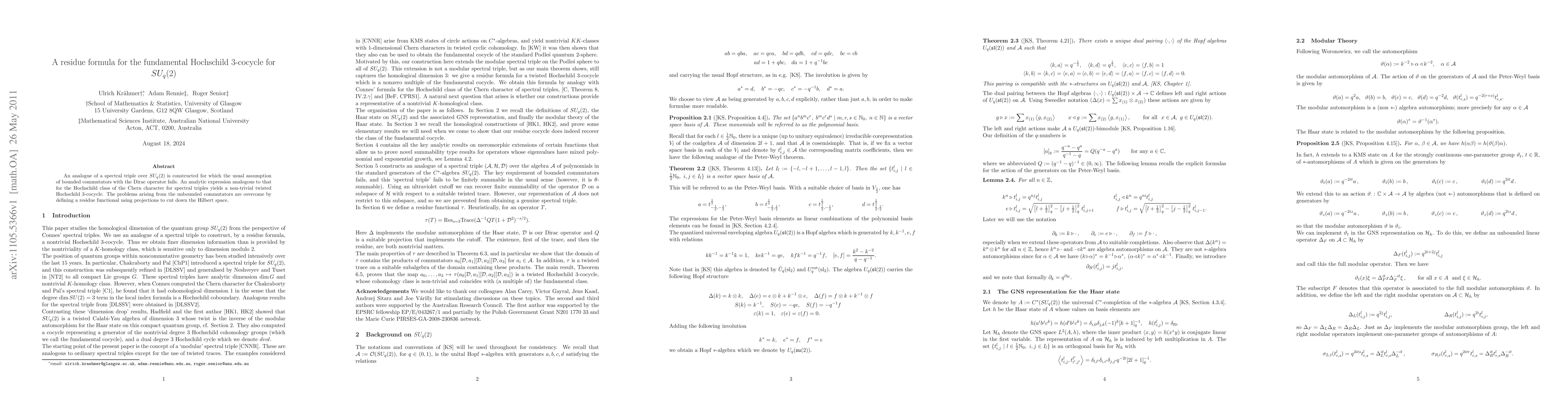 This paper constructs a residue formula for the fundamental Hochschild 3-cocycle in the context of non-commutative geometry over SUq(2), addressing issues with unbounded commutators by defining a residue functional through projections. This leads to a non-trivial twisted Hochschild 3-cocycle.
