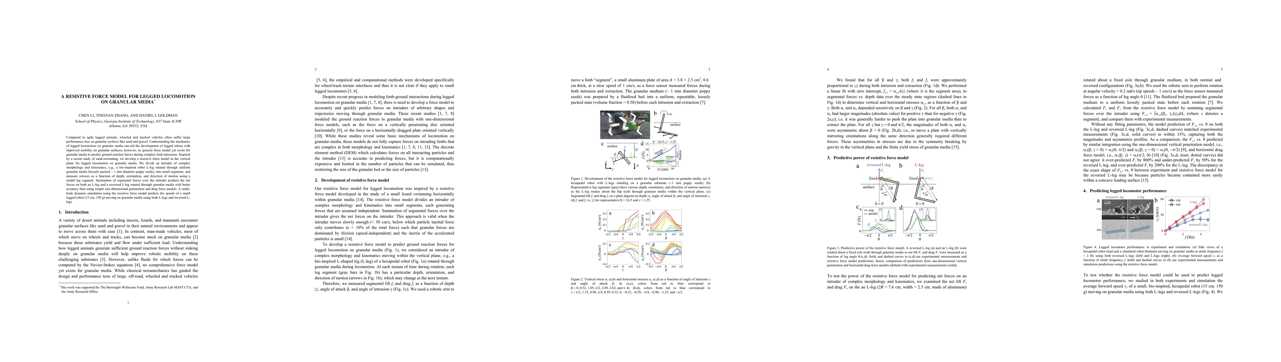 This paper develops a resistive force model for legged locomotion on granular media, demonstrating improved accuracy in predicting ground reaction forces compared to existing models. The model, validated through experiments with poppy seeds, successfully predicts the performance of bio-inspired legged robots on granular surfaces.