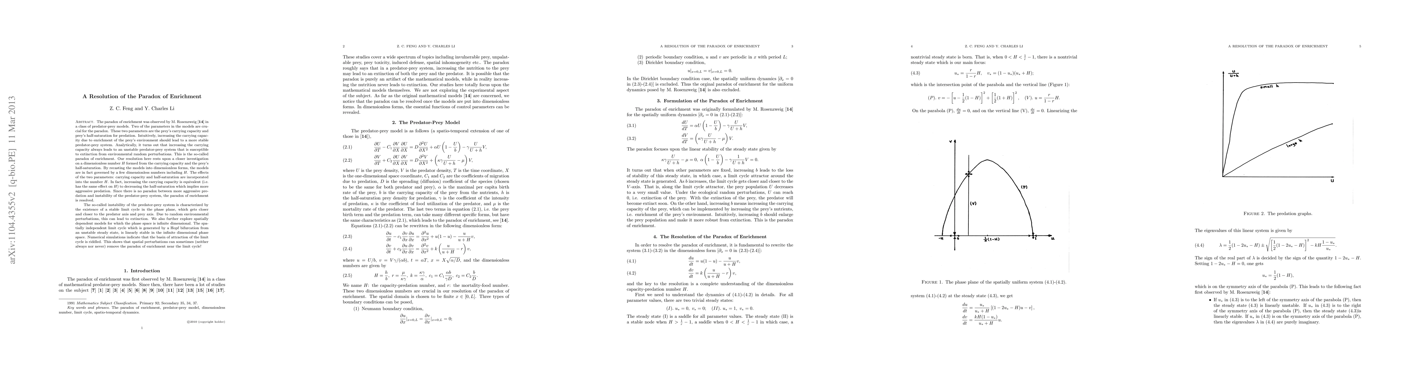 This research resolves the paradox of enrichment in predator-prey systems by showing that spatial perturbations can remove the paradox.