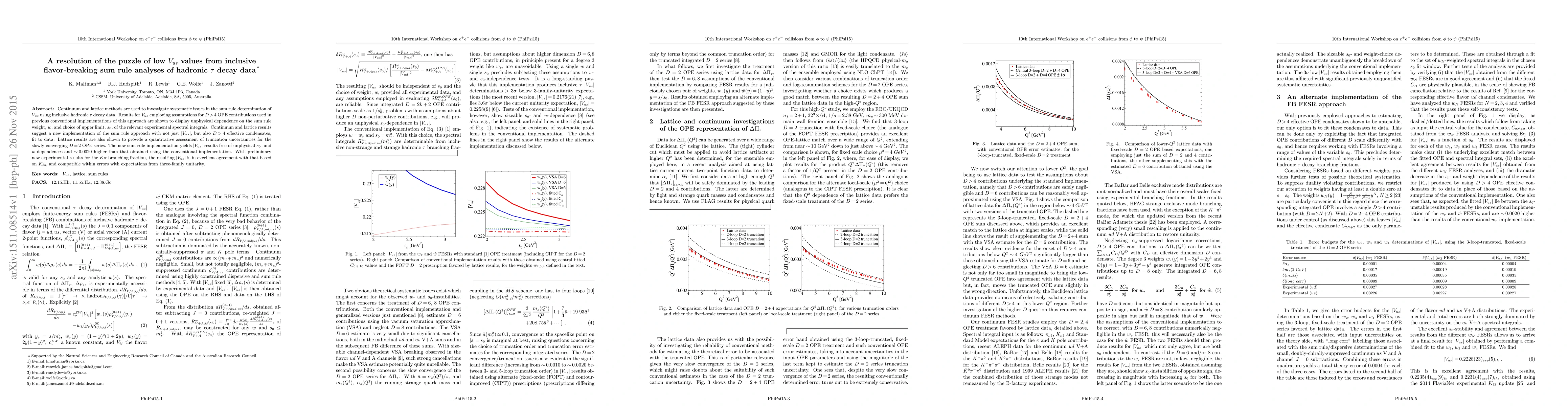 Continuum and lattice methods are used to investigate systematic issues in the sum rule determination of $V_{us}$ using inclusive hadronic $\tau$ decay data. Results for $V_{us}$ employing assumptions for $D>4$ OPE contributions used in previous conventional implementations of this approach are shown to display unphysical dependence on the sum rule weight, $w$, and choice of upper limit, $s_0$, of the relevant experimental spectral integrals. Continuum and lattice results suggest a new implementation of the sum rule approach with not just $\vert V_{us}\vert$, but also $D>4$ effective condensates, fit to data. Lattice results are also shown to provide a quantitative assessment of truncation uncertainties for the slowly converging $D=2$ OPE series. The new sum rule implementation yields $\vert V_{us}\vert$ results free of unphysical $s_0$- and $w$-dependences and $\sim 0.0020$ higher than that obtained using the conventional implementation. With preliminary new experimental results for the $K\pi$ branching fraction, the resulting $\vert V_{us}\vert$ is in excellent agreement with that based on $K_{\ell 3}$, and compatible within errors with expectations from three-family unitarity.