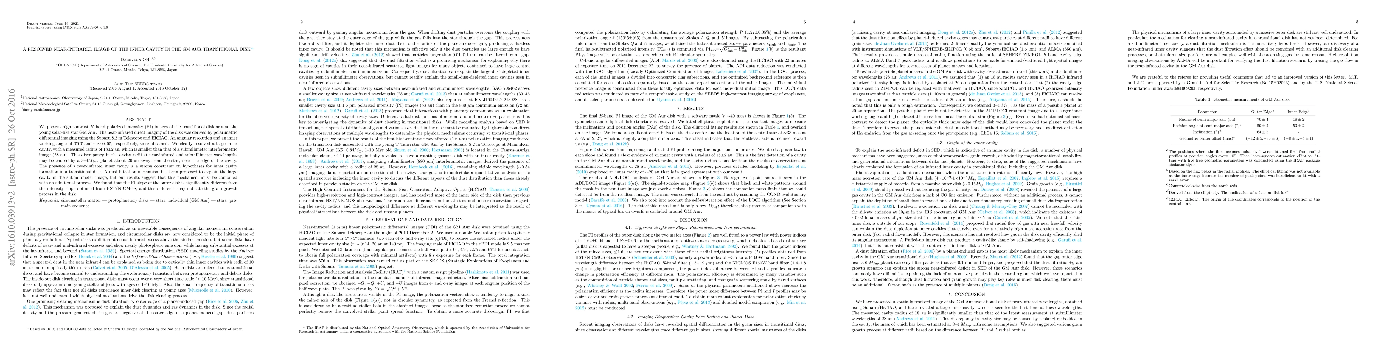 This paper presents high-resolution near-infrared images of the transitional disk around GM Aur, revealing a smaller inner cavity than previously observed in submillimeter images. The findings suggest the presence of a planet near the cavity edge, challenging existing dust filtration models for cavity formation.