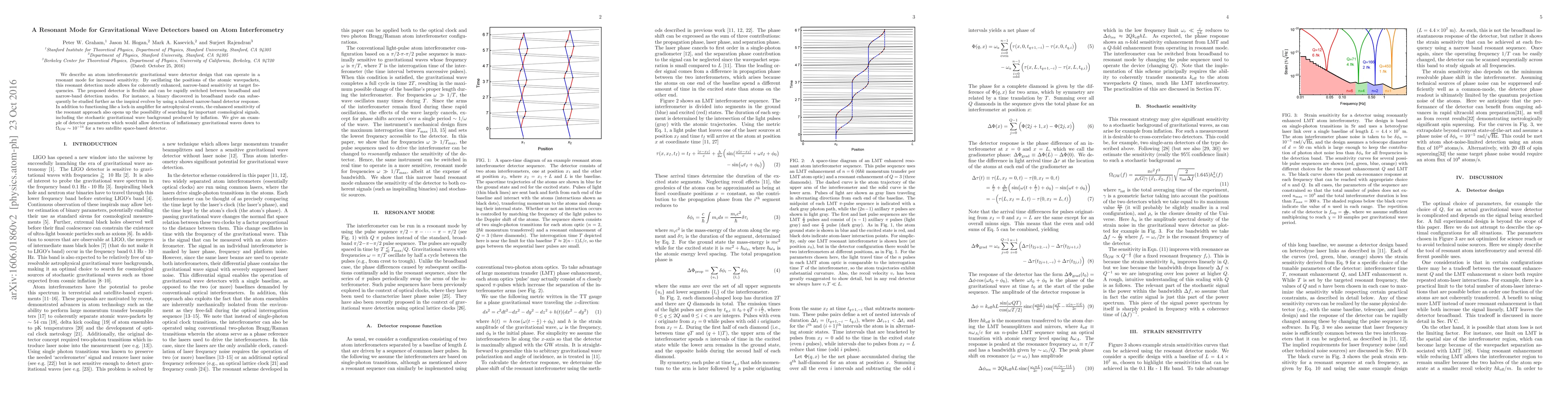This paper proposes a resonant mode atom interferometric gravitational wave detector that enhances sensitivity through coherent oscillations of atomic wavepackets, enabling flexible switching between broadband and narrow-band detection. The design could detect cosmological signals like the stochastic gravitational wave background from inflation, with parameters allowing detection down to $\Omega_\text{GW} \sim 10^{-14}$.