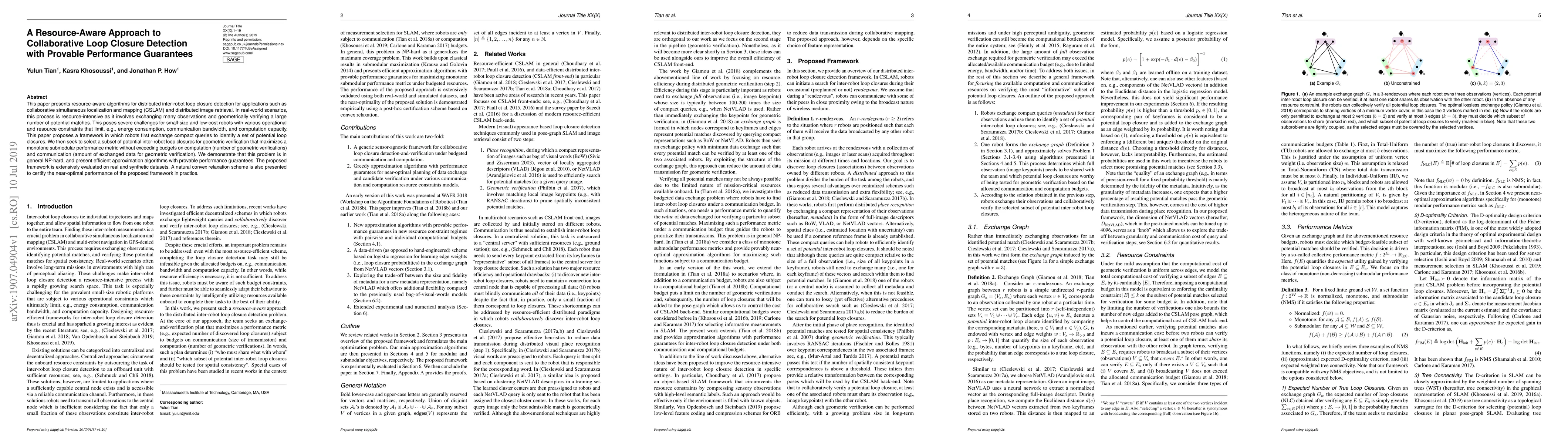 This paper introduces resource-aware algorithms for distributed inter-robot loop closure detection, addressing computational and communication constraints. It proposes efficient approximation algorithms with provable performance guarantees for selecting optimal loop closures under resource budgets.