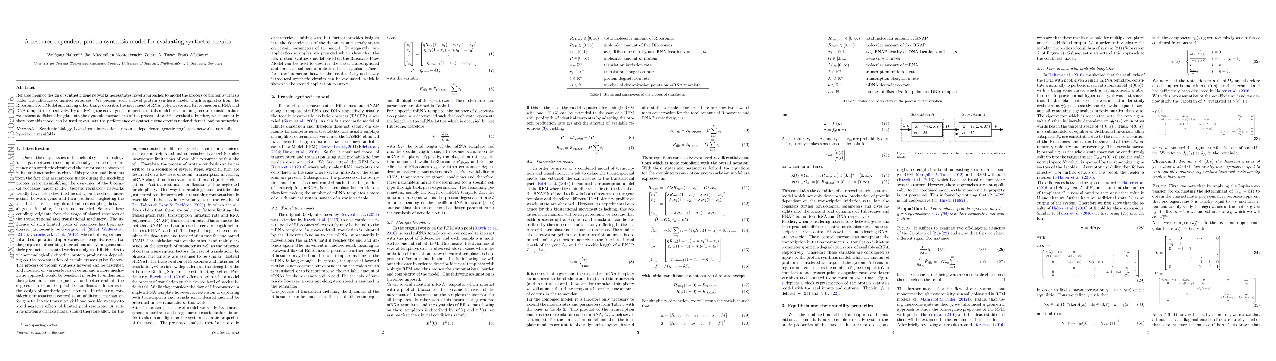 Reliable in-silico design of synthetic gene networks necessitates novel approaches to model the process of protein synthesis under the influence of limited resources. We present such a novel protein synthesis model which originates from the Ribosome Flow Model and among other things describes the movement of RNA-polymerase and Ribosomes on mRNA and DNA templates respectively. By analyzing the convergence properties of this model based upon geometric considerations we present additional insights into the dynamic mechanisms of the process of protein synthesis. Further, we exemplarily show how this model can be used to evaluate the performance of synthetic gene circuits under different loading scenarios.