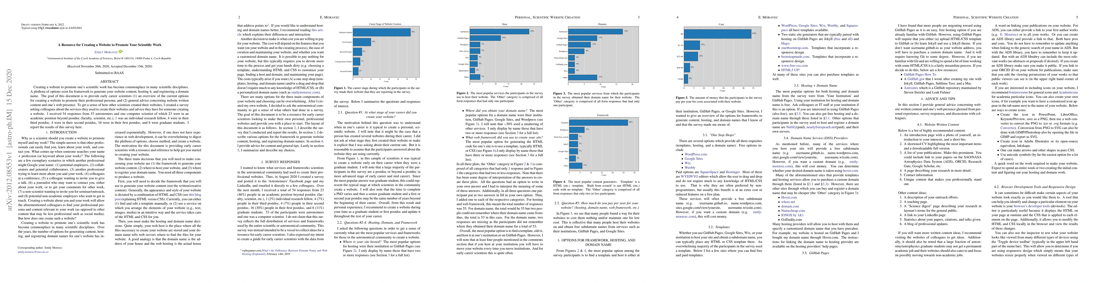 A survey of scientists found common website creation methods and advice for early career researchers, including using frameworks like GitHub Pages and WordPress to promote their work.