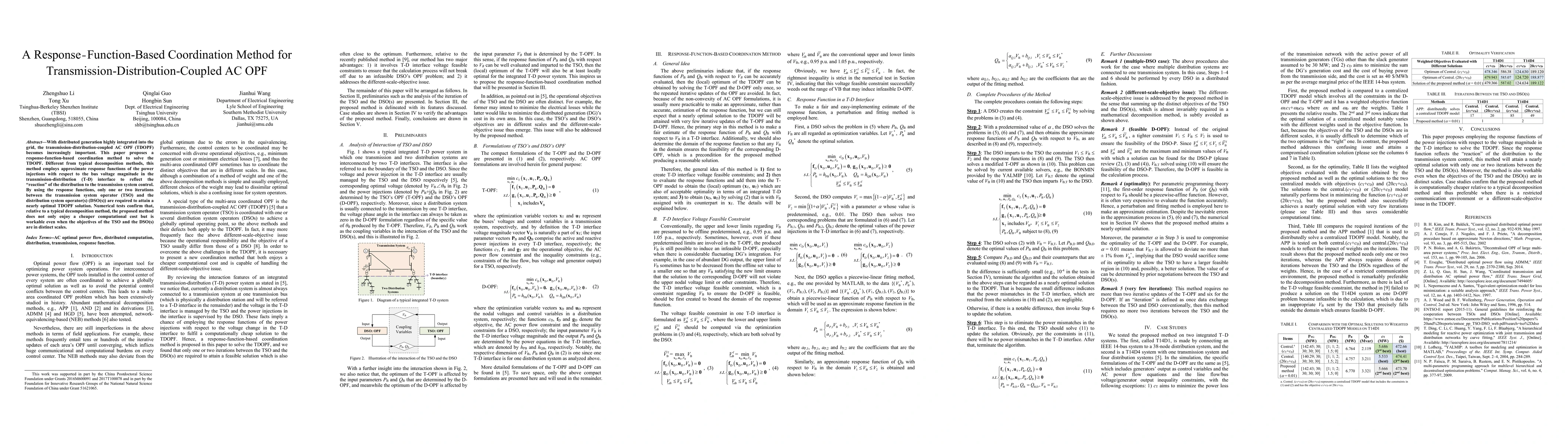 This paper proposes a response-function-based coordination method to solve the transmission-distribution-coupled AC OPF (TDOPF), requiring only one or two iterations between TSO and DSO(s). This method uses approximate response functions to reflect distribution system "reactions" to transmission control, achieving nearly optimal solutions with lower computational costs compared to typical decomposition methods.