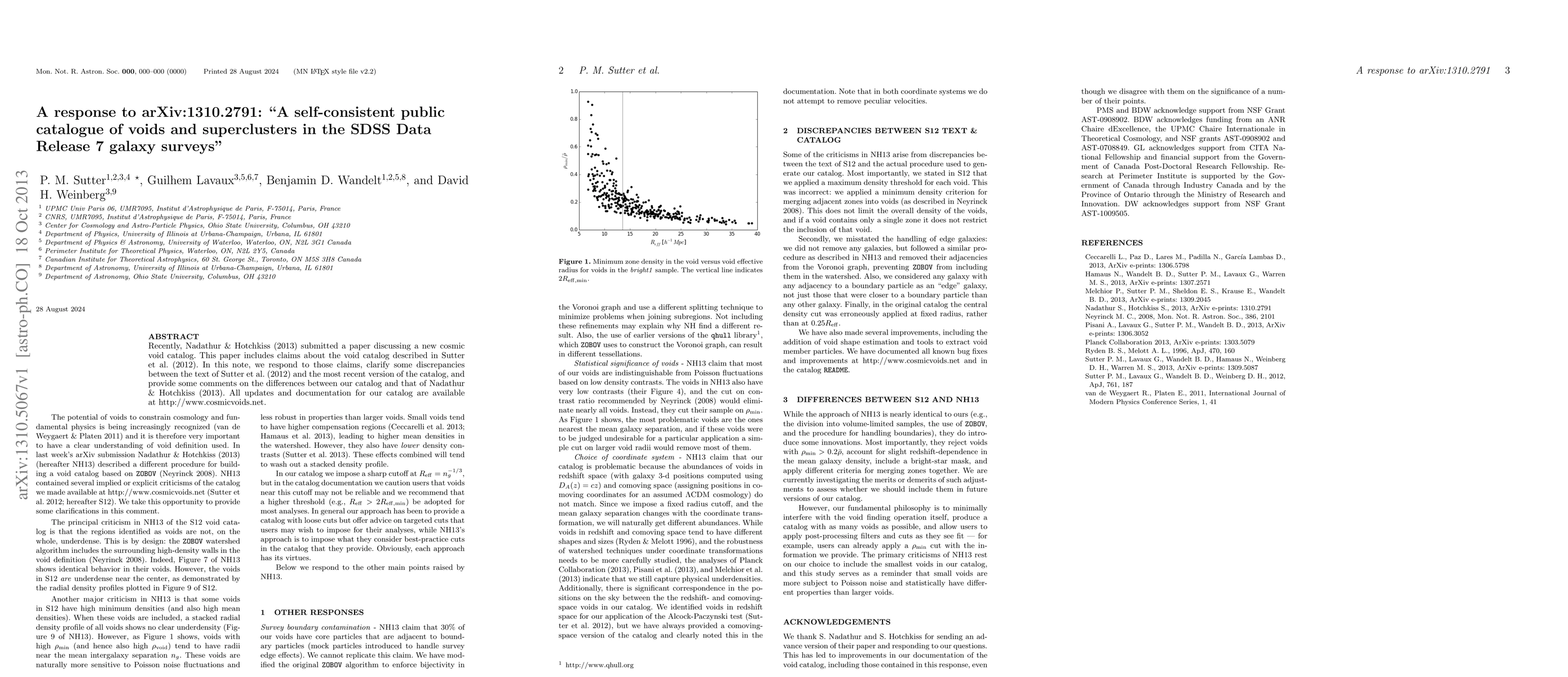 Recently, Nadathur & Hotchkiss (2013) submitted a paper discussing a new cosmic void catalog. This paper includes claims about the void catalog described in Sutter et al. (2012). In this note, we respond to those claims, clarify some discrepancies between the text of Sutter et al. (2012) and the most recent version of the catalog, and provide some comments on the differences between our catalog and that of Nadathur & Hotchkiss (2013). All updates and documentation for our catalog are available at http://www.cosmicvoids.net.