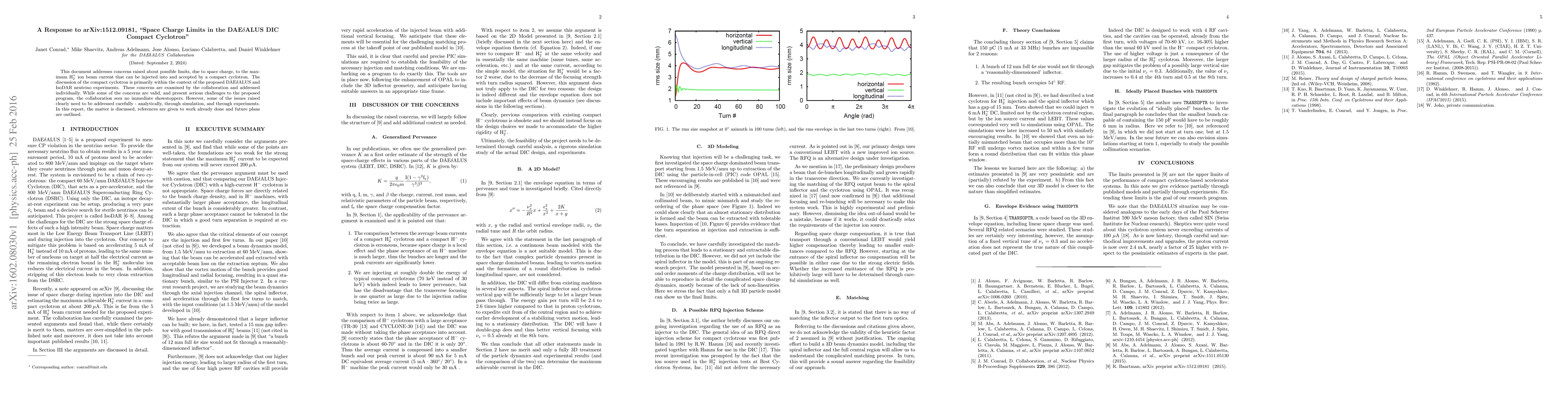 This document addresses concerns raised about possible limits, due to space charge, to the maximum H2+ ion beam current that can be injected into and accepted by a compact cyclotron. The discussion of the compact cyclotron is primarily within the context of the proposed DAEdALUS and IsoDAR neutrino experiments. These concerns are examined by the collaboration and addressed individually. While some of the concerns are valid, and present serious challenges to the proposed program, the collaboration sees no immediate showstoppers. However, some of the issues raised clearly need to be addressed carefully--analytically, through simulation, and through experiments. In this report, the matter is discussed, references are given to work already done and future plans are outlined.