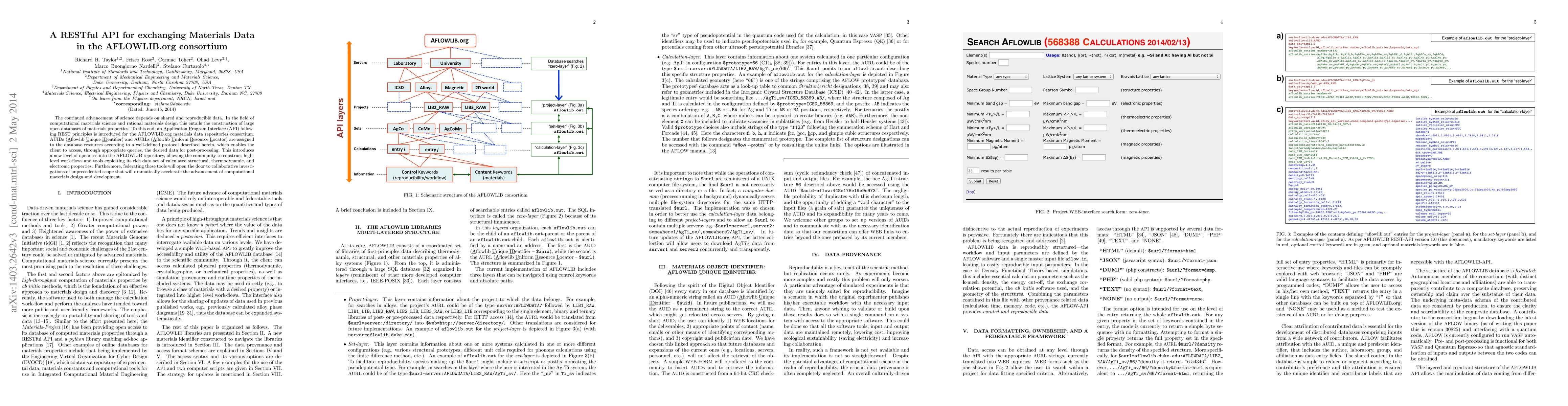 A new RESTful API for accessing materials data in AFLOWLIB.org enables open exchange of data, allowing for collaborative investigation and high-level workflows. This development accelerates computational materials design and development through increased community involvement.