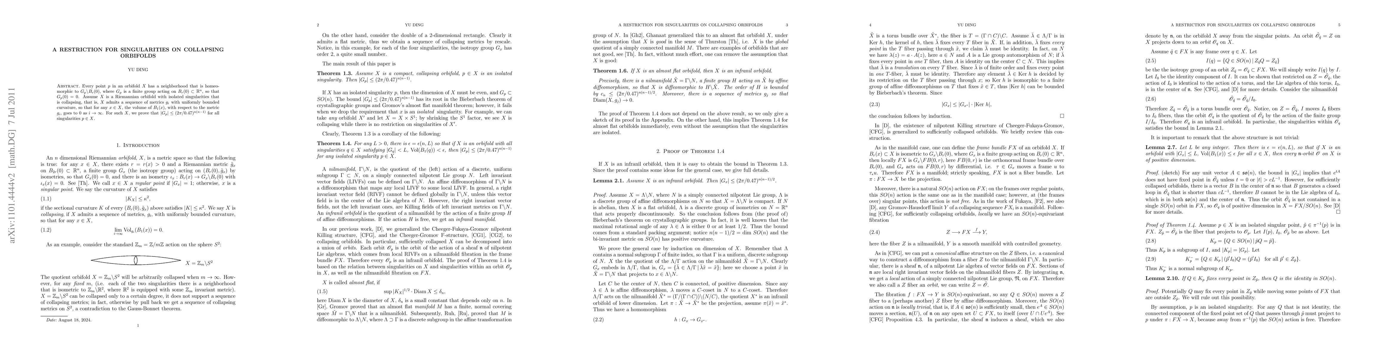 This paper demonstrates that for collapsing orbifolds with isolated singularities, there exists a uniform bound on the size of the finite groups $G_x$ that act on the neighborhoods around the singularities. This provides a constraint on the behavior of singularities in such orbifolds.
