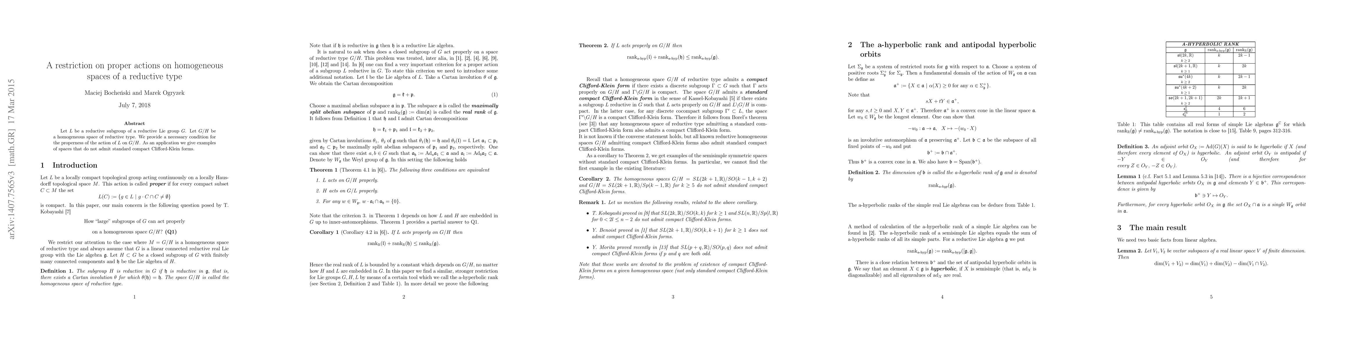 This paper establishes a necessary condition for the properness of actions by reductive subgroups L on homogeneous spaces G/H of reductive type, and uses this to demonstrate specific spaces lacking standard compact Clifford-Klein forms.