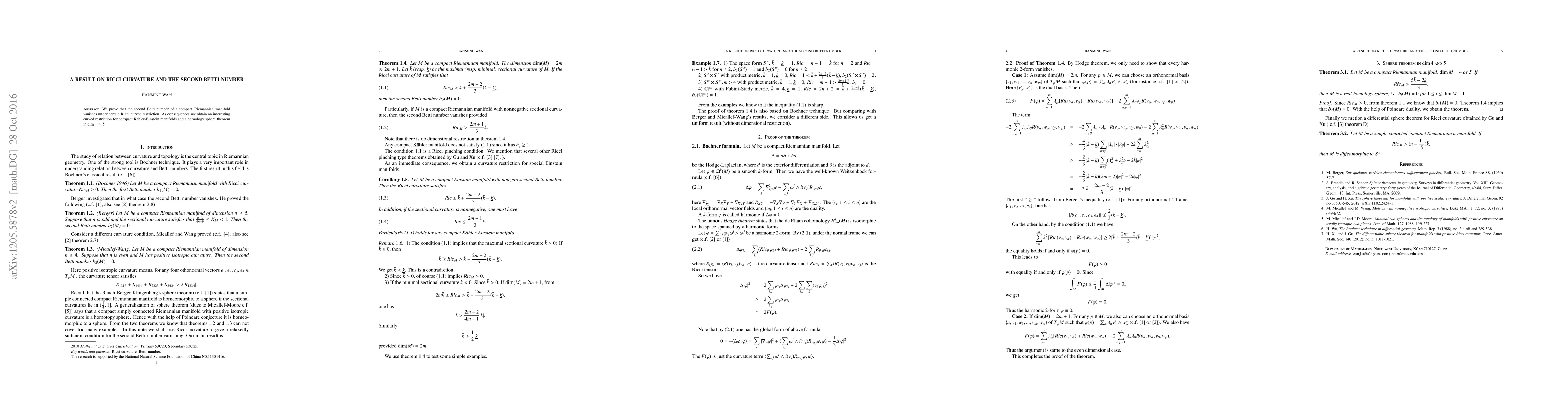 We prove that the second Betti number of a compact Riemannian manifold vanishes under certain Ricci curved restriction.