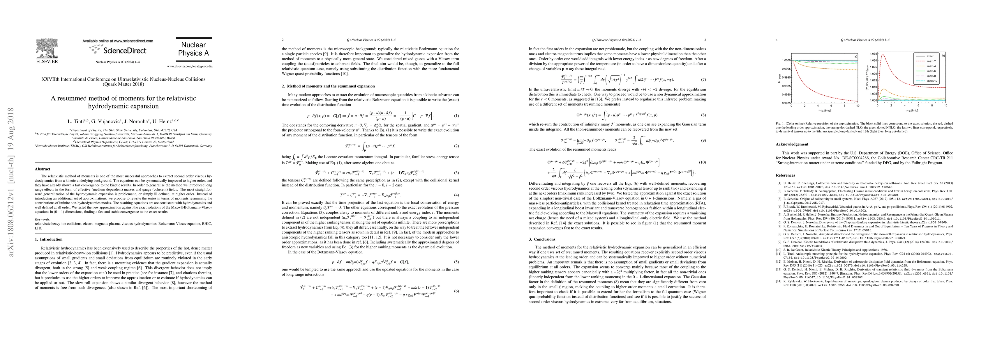 This research introduces a resummed method of moments in relativistic hydrodynamics, addressing higher-order issues by incorporating long-range effects via effective masses and gauge fields. The method ensures consistency with hydrodynamics and stability at all orders, successfully tested against exact Boltzmann-Maxwell-Vlasov solutions in (0+1)-dimensions, showing rapid convergence.