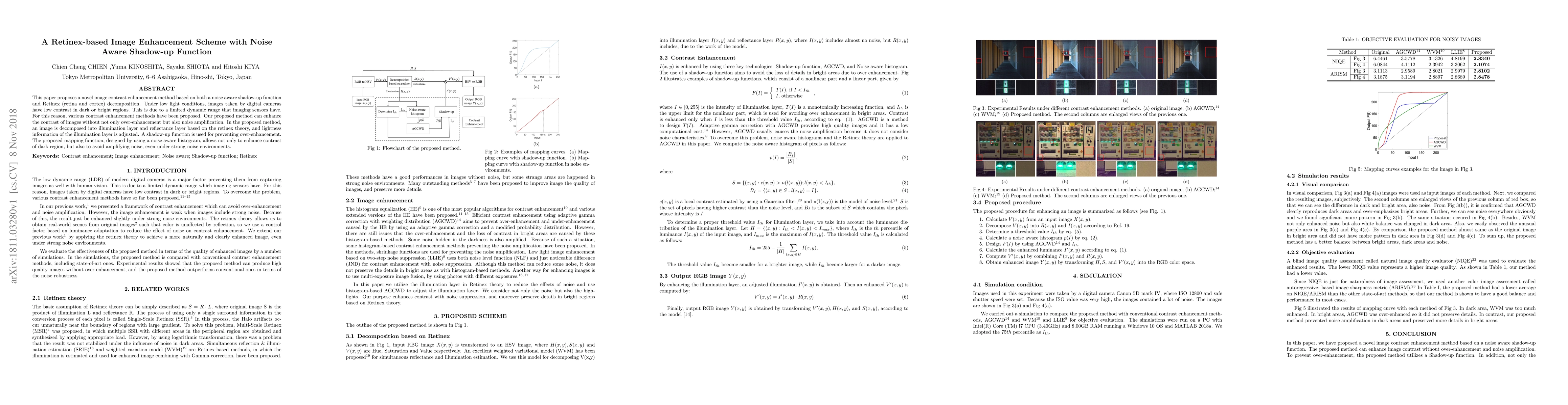 This paper introduces a Retinex-based image enhancement method that combines a noise-aware shadow-up function with Retinex decomposition to improve contrast in low light images without over-enhancement or noise amplification. The method adjusts illumination layer lightness and uses a shadow-up function to prevent over-enhancement while maintaining noise levels.