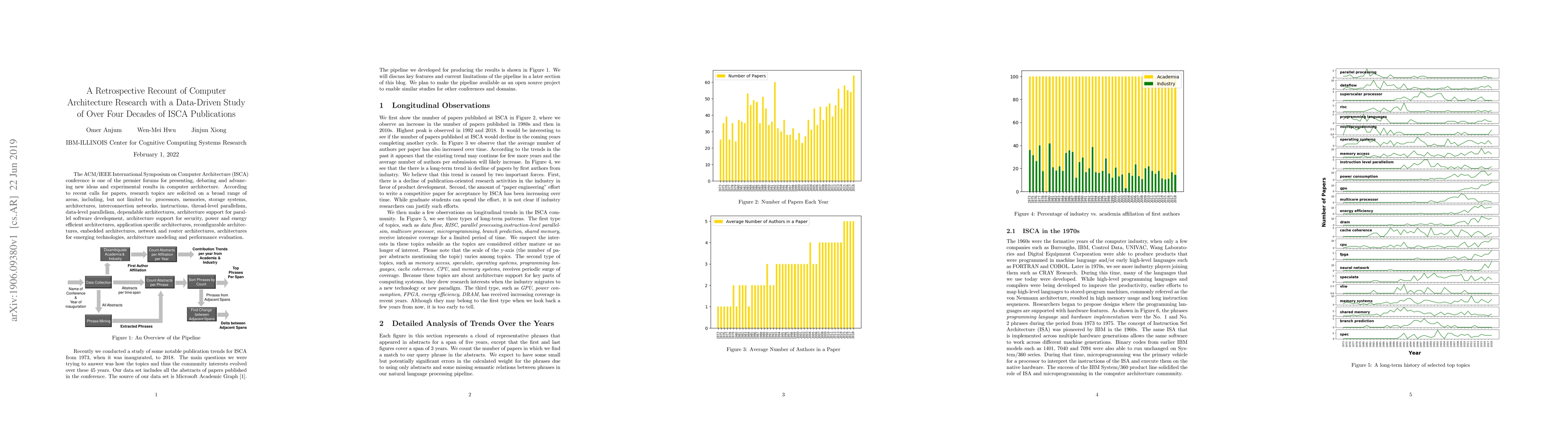 This study began with a research project, called DISCvR, conducted at the IBM-ILLINOIS Center for Cognitive Computing Systems Reseach. The goal of DISCvR was to build a practical NLP based AI pipeline for document understanding which will help us better understand the computation patterns and requirements of modern computing systems. While building such a prototype, an early use case came to us thanks to the 2017 IEEE/ACM International Symposium on Microarchitecture (MICRO-50) Program Co-chairs, Drs. Hillery Hunter and Jaime Moreno. They asked us if we can perform some data-driven analysis of the past 50 years of MICRO papers and show some interesting historical perspectives on MICRO's 50 years of publication. We learned two important lessons from that experience: (1) building an AI solution to truly understand unstructured data is hard in spite of the many claimed successes in natural language understanding; and (2) providing a data-driven perspective on computer architecture research is a very interesting and fun project. Recently we decided to conduct a more thorough study based on all past papers of International Symposium on Computer Architecture (ISCA) from 1973 to 2018, which resulted this article. We recognize that we have just scratched the surface of natural language understanding of unstructured data, and there are many more aspects that we can improve. But even with our current study, we felt there were enough interesting findings that may be worthwhile to share with the community. Hence we decided to write this article to summarize our findings so far based only on ISCA publications. Our hope is to generate further interests from the community in this topic, and we welcome collaboration from the community to deepen our understanding both of the computer architecture research and of the challenges of NLP-based AI solutions.