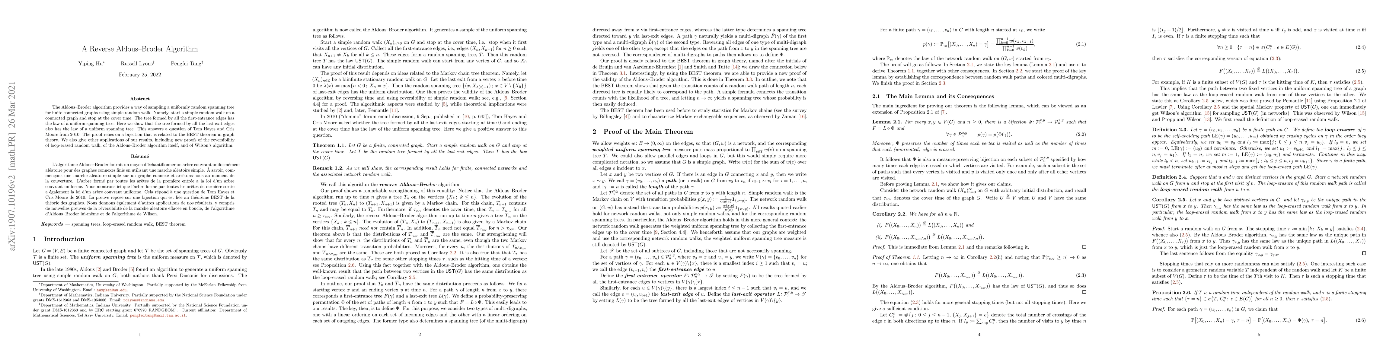 The Aldous--Broder algorithm provides a way of sampling a uniformly random spanning tree for finite connected graphs using simple random walk. Namely, start a simple random walk on a connected graph and stop at the cover time. The tree formed by all the first-entrance edges has the law of a uniform spanning tree. Here we show that the tree formed by all the last-exit edges also has the law of a uniform spanning tree. This answers a question of Tom Hayes and Cris Moore from 2010. The proof relies on a bijection that is related to the BEST theorem in graph theory. We also give other applications of our results, including new proofs of the reversibility of loop-erased random walk, of the Aldous--Broder algorithm itself, and of Wilson's algorithm.