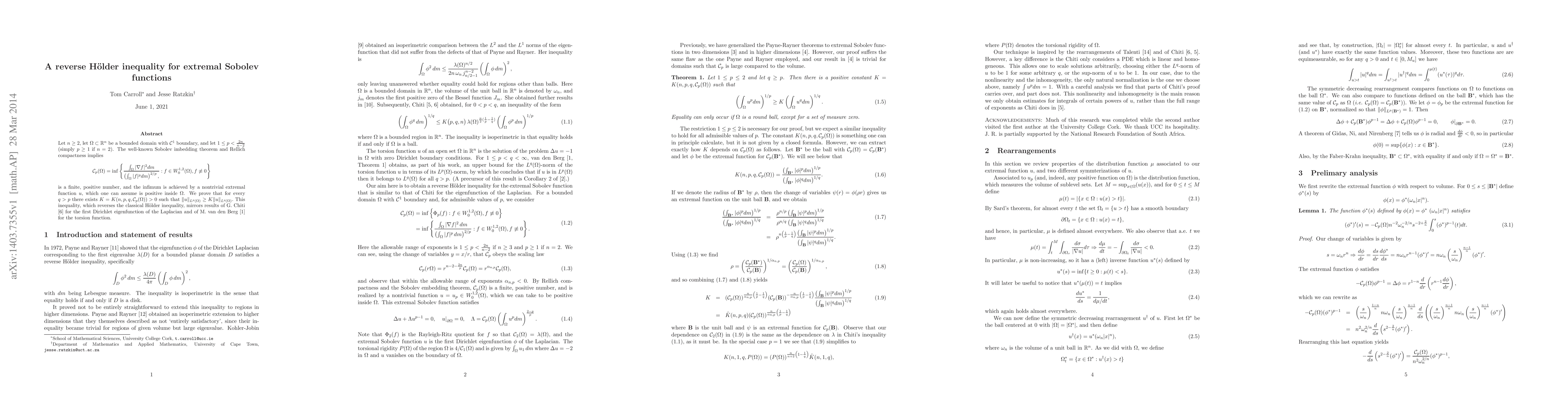 The paper proves a reverse Hölder inequality for functions that achieve the best constant in the Sobolev inequality within a bounded domain with a smooth boundary. It establishes a bound relating the $L^p$ and $L^q$ norms of such extremal Sobolev functions, generalizing prior results by Chiti and van den Berg.