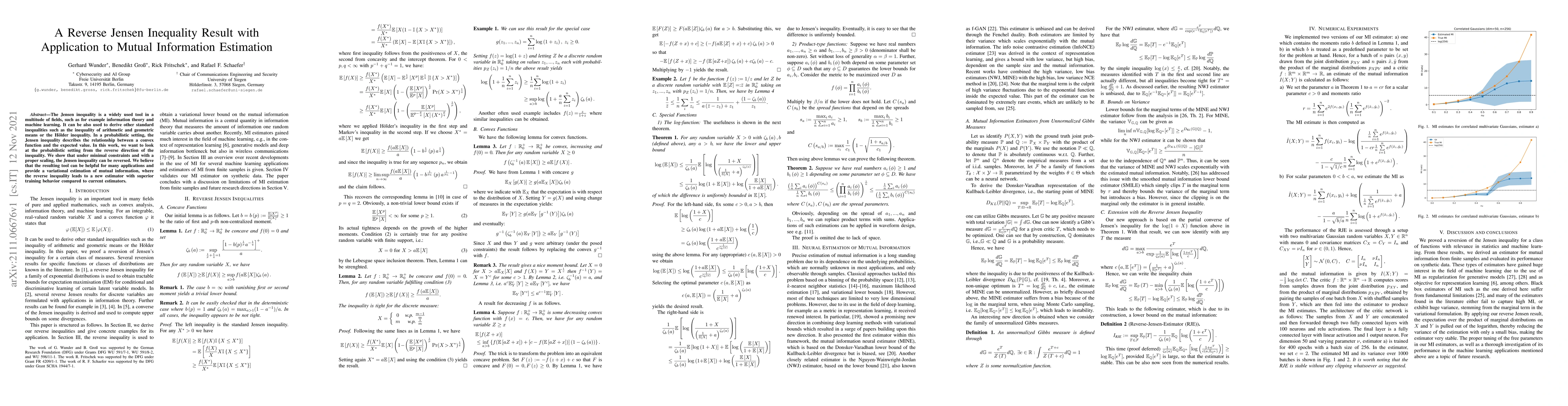 This paper presents a reverse Jensen inequality in probabilistic settings, demonstrating its utility by developing a new variational estimator for mutual information with improved training behavior compared to existing methods. The reverse inequality provides a novel approach to information estimation in fields like machine learning and information theory.
