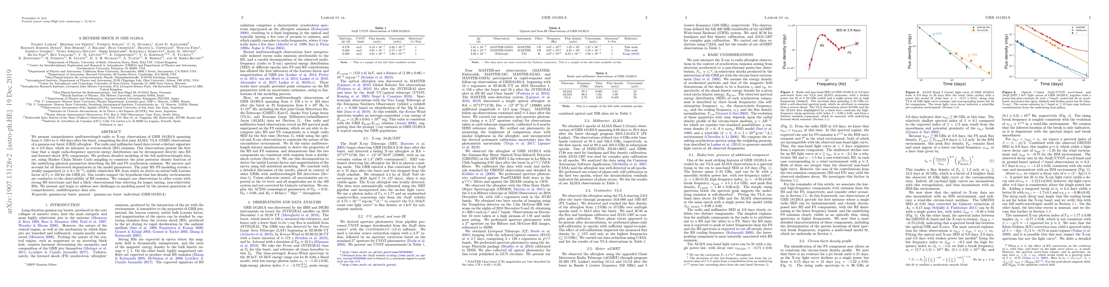 Researchers detected a reverse shock in gamma-ray burst 181201A using multiwavelength radio to X-ray observations, revealing a distinct signature at 3.9 days after the burst.