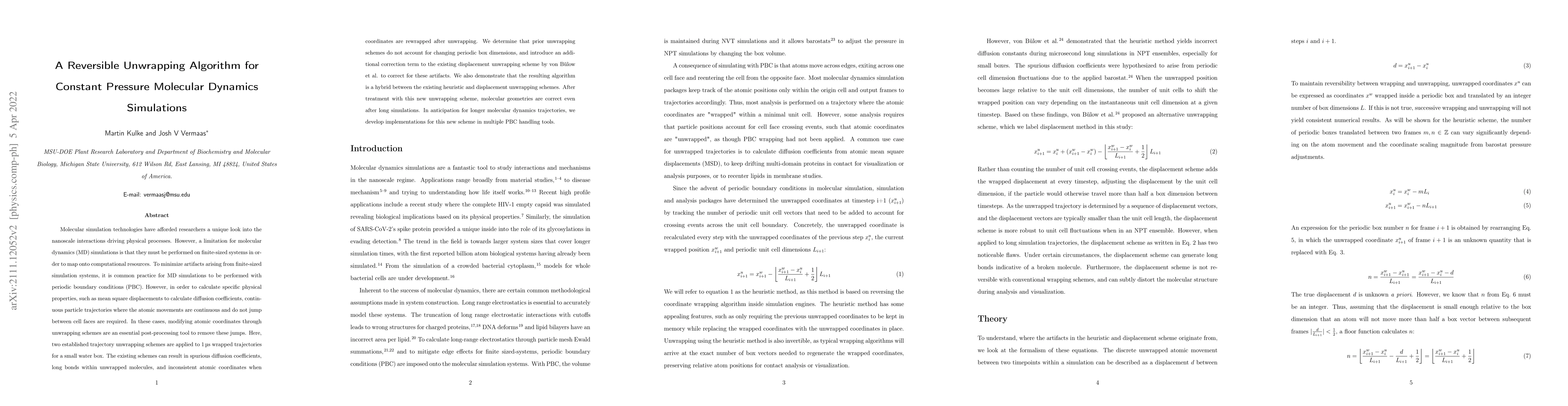 This paper introduces a new reversible unwrapping algorithm to correct artifacts in molecular dynamics simulations with periodic boundary conditions, addressing issues like spurious diffusion coefficients and inconsistent atomic coordinates. The proposed method combines existing unwrapping schemes with an additional correction term to handle changing periodic box dimensions, ensuring accurate molecular geometries over long simulations.