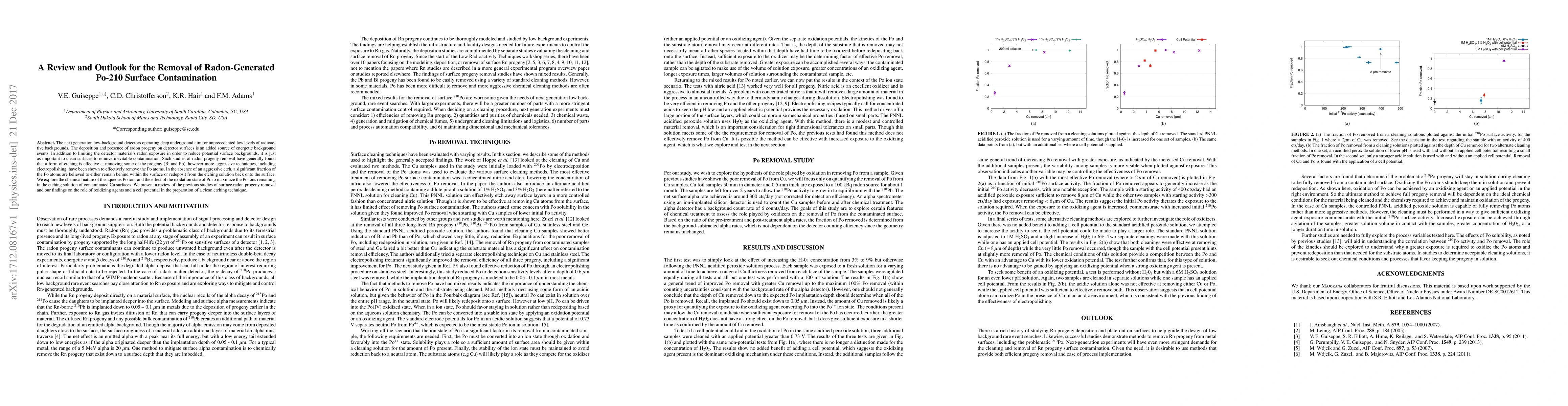The next generation low-background detectors operating deep underground aim for unprecedented low levels of radioactive backgrounds. The deposition and presence of radon progeny on detector surfaces is an added source of energetic background events. In addition to limiting the detector material's radon exposure in order to reduce potential surface backgrounds, it is just as important to clean surfaces to remove inevitable contamination. Such studies of radon progeny removal have generally found that a form of etching is effective at removing some of the progeny (Bi and Pb), however more aggressive techniques, including electropolishing, have been shown to effectively remove the Po atoms. In the absence of an aggressive etch, a significant fraction of the Po atoms are believed to either remain behind within the surface or redeposit from the etching solution back onto the surface. We explore the chemical nature of the aqueous Po ions and the effect of the oxidation state of Po to maximize the Po ions remaining in the etching solution of contaminated Cu surfaces. We present a review of the previous studies of surface radon progeny removal and our findings on the role of oxidizing agents and a cell potential in the preparation of a clean etching technique.