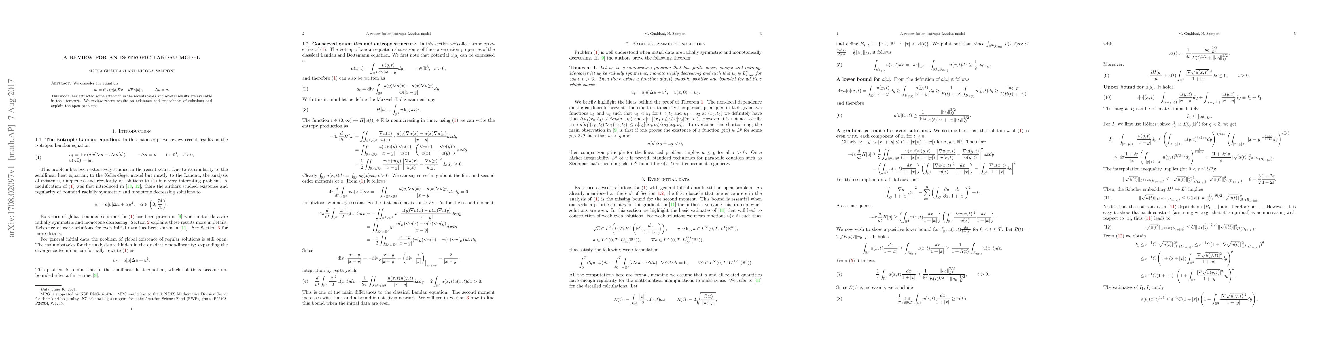 We consider the equation $u_t = \mbox{Div}(a[u]\nabla u - u\nabla a[u])$, $-\Delta a = u$. This model has attracted some attention in the recents years and several results are available in the literature. We review recent results on existence and smoothness of solutions and explain the open problems.