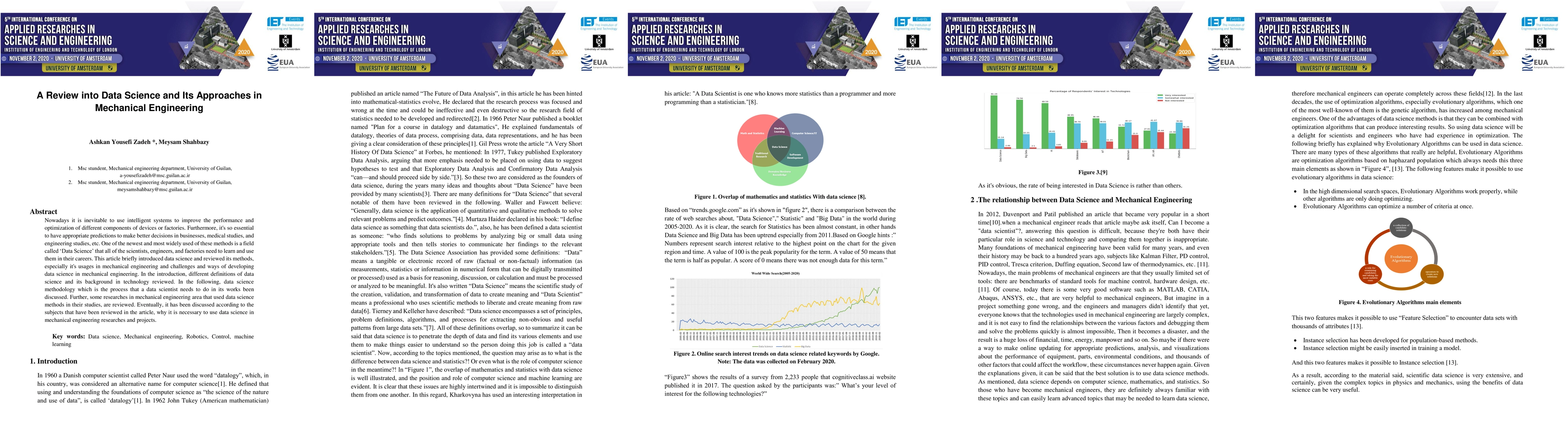 Nowadays it is inevitable to use intelligent systems to improve the performance and optimization of different components of devices or factories. Furthermore, it's so essential to have appropriate predictions to make better decisions in businesses, medical studies, and engineering studies, etc. One of the newest and most widely used of these methods is a field called Data Science that all of the scientists, engineers, and factories need to learn and use in their careers. This article briefly introduced data science and reviewed its methods, especially it's usages in mechanical engineering and challenges and ways of developing data science in mechanical engineering. In the introduction, different definitions of data science and its background in technology reviewed. In the following, data science methodology which is the process that a data scientist needs to do in its works been discussed. Further, some researches in the mechanical engineering area that used data science methods in their studies, are reviewed. Eventually, it has been discussed according to the subjects that have been reviewed in the article, why it is necessary to use data science in mechanical engineering researches and projects.
