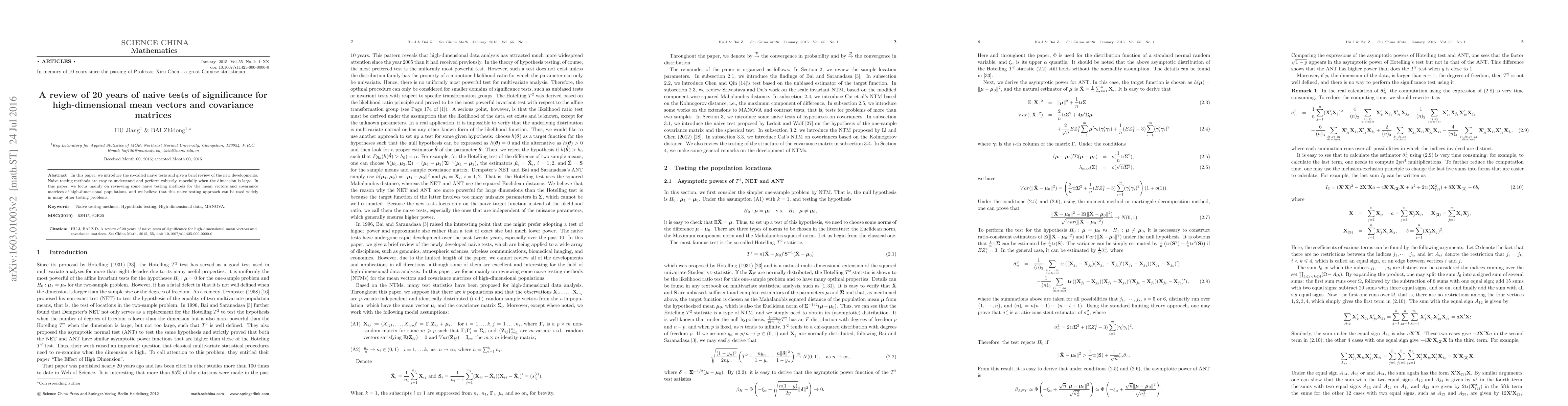 In this paper, we will introduce the so called naive tests and give a brief review on the newly development. Naive testing methods are easy to understand and performs robust especially when the dimension is large. In this paper, we mainly focus on reviewing some naive testing methods for the mean vectors and covariance matrices of high dimensional populations and believe this naive test idea can be wildly used in many other testing problems.