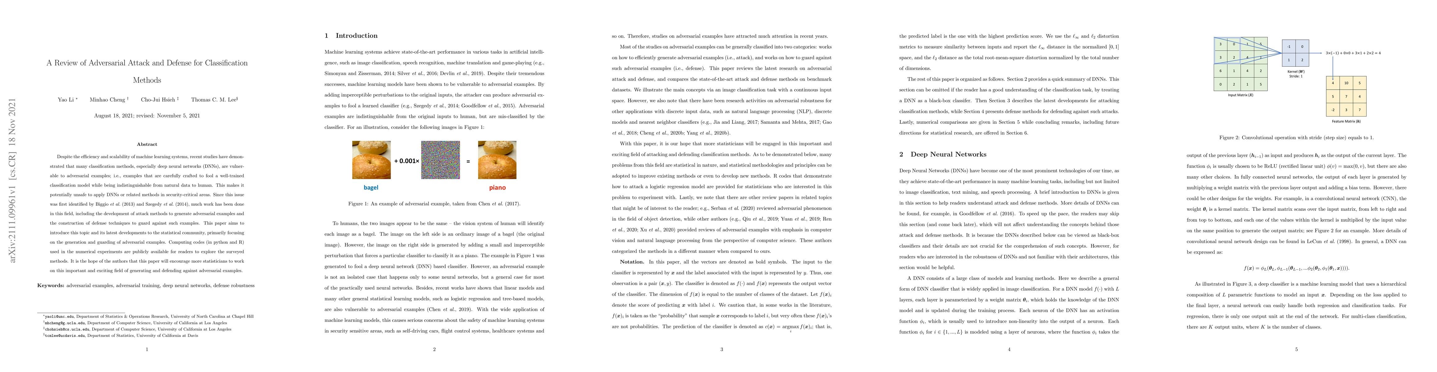 Despite the efficiency and scalability of machine learning systems, recent studies have demonstrated that many classification methods, especially deep neural networks (DNNs), are vulnerable to adversarial examples; i.e., examples that are carefully crafted to fool a well-trained classification model while being indistinguishable from natural data to human. This makes it potentially unsafe to apply DNNs or related methods in security-critical areas. Since this issue was first identified by Biggio et al. (2013) and Szegedy et al.(2014), much work has been done in this field, including the development of attack methods to generate adversarial examples and the construction of defense techniques to guard against such examples. This paper aims to introduce this topic and its latest developments to the statistical community, primarily focusing on the generation and guarding of adversarial examples. Computing codes (in python and R) used in the numerical experiments are publicly available for readers to explore the surveyed methods. It is the hope of the authors that this paper will encourage more statisticians to work on this important and exciting field of generating and defending against adversarial examples.