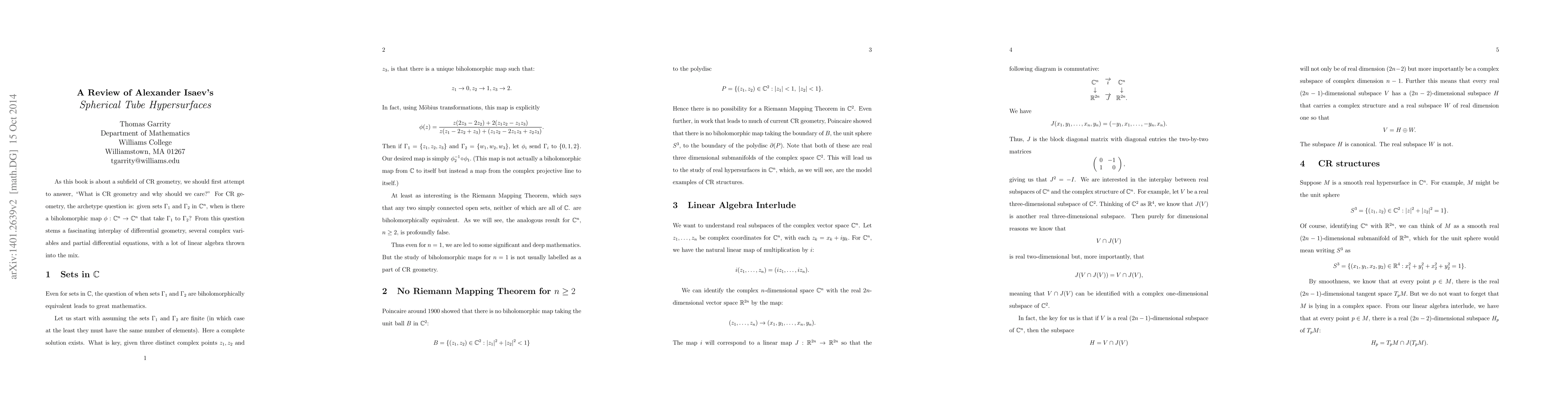 This review of Alexander Isaev's work on Spherical Tube Hypersurfaces provides an accessible introduction to CR geometry, summarizing key findings and implications in the field, aimed at a non-expert audience.