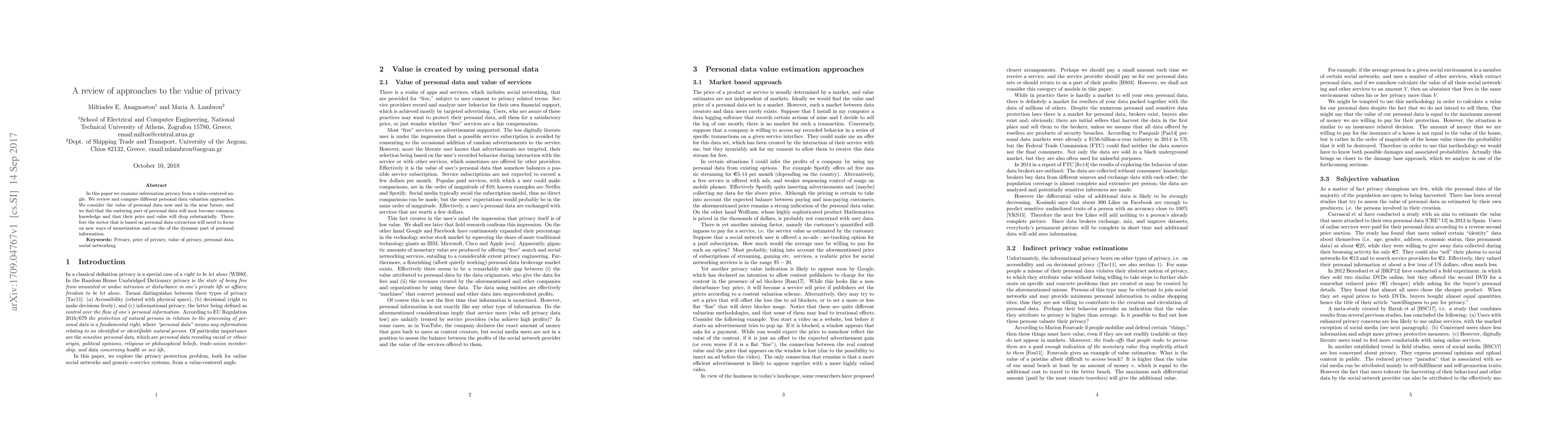 In this paper we examine information privacy from a value-centered angle. We review and compare different personal data valuation approaches. We consider the value of personal data now and in the near future, and we find that the enduring part of personal data will soon become common knowledge and that their price and value will drop substantially. Therefore the sector that is based on personal data extraction will need to focus on new ways of monetization and on the of the dynamic part of personal information.