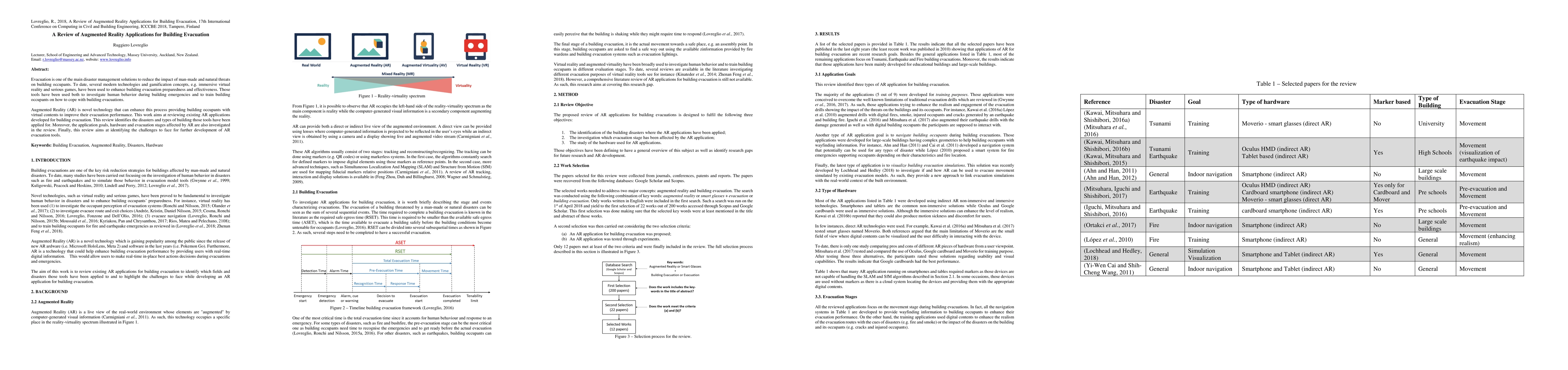 This paper reviews Augmented Reality (AR) applications designed to enhance building evacuation preparedness, identifying their goals, hardware, and the stages of evacuation they affect, as well as the challenges for future development. The review highlights the potential of AR to improve evacuation performance and effectiveness.