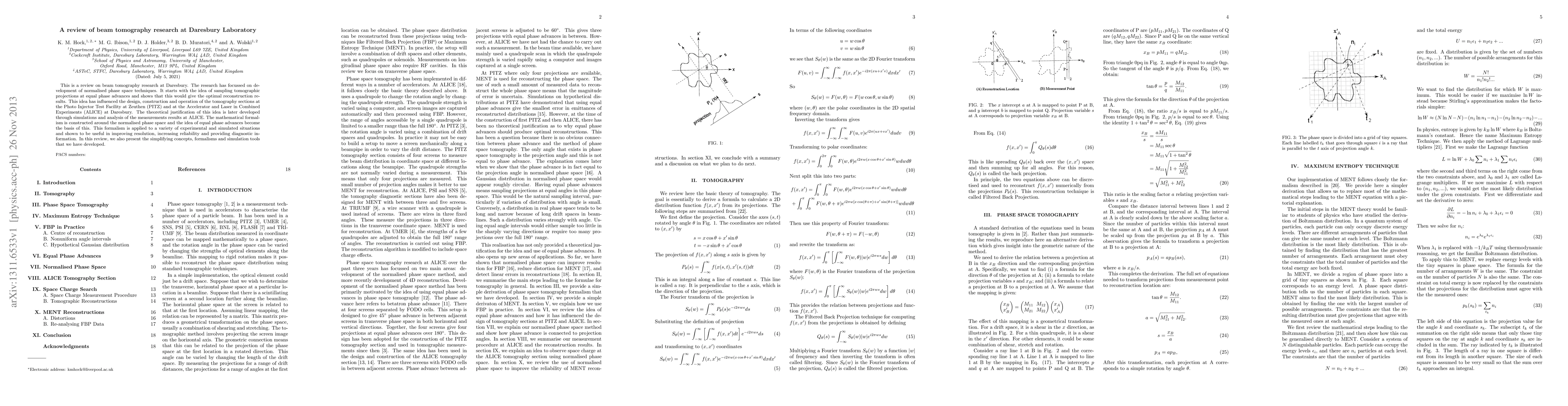 This is a review on beam tomography research at Daresbury. The research has focussed on development of normalised phase space techniques. It starts with the idea of sampling tomographic projections at equal phase advances and shows that this would give the optimal reconstruction results. This idea has influenced the design, construction and operation of the tomography sections at the Photo Injector Test Facility at Zeuthen (PITZ) and at the Accelerator and Laser in Combined Experiments (ALICE) at Daresbury. The theoretical justification of this idea is later developed through simulations and analysis of the measurements results at ALICE. The mathematical formalism is constructed around the normalised phase space and the idea of equal phase advances become the basis of this. This formalism is applied to a variety of experimental and simulated situations and shown to be useful in improving resolution, increasing reliability and providing diagnostic information. In this review, we also present the simplifying concepts, formalisms and simulation tools that we have developed.