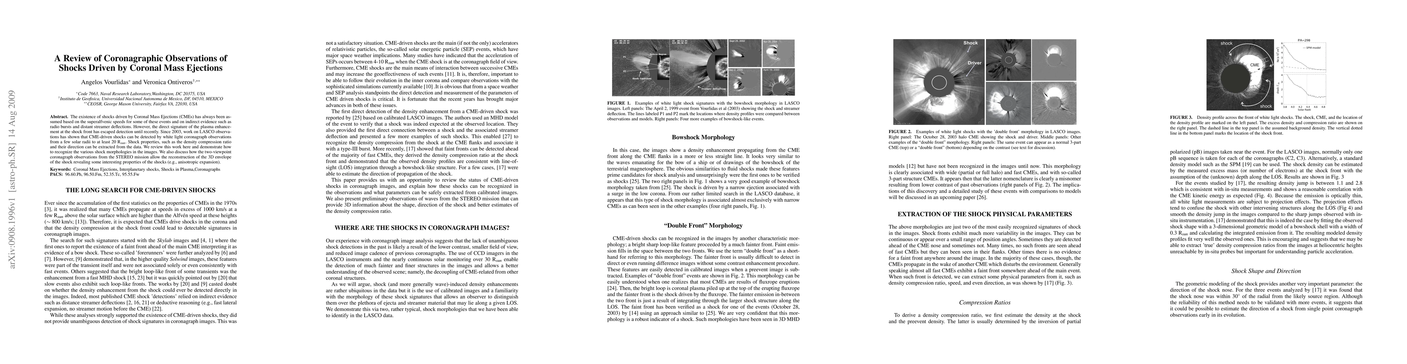 This paper reviews recent advancements in detecting shocks driven by Coronal Mass Ejections (CMEs) using white light coronagraph observations, highlighting the identification of shock fronts and their properties. It also discusses the use of STEREO mission data to reconstruct the 3D structure of these shocks, revealing anisotropic expansion and other unique characteristics.