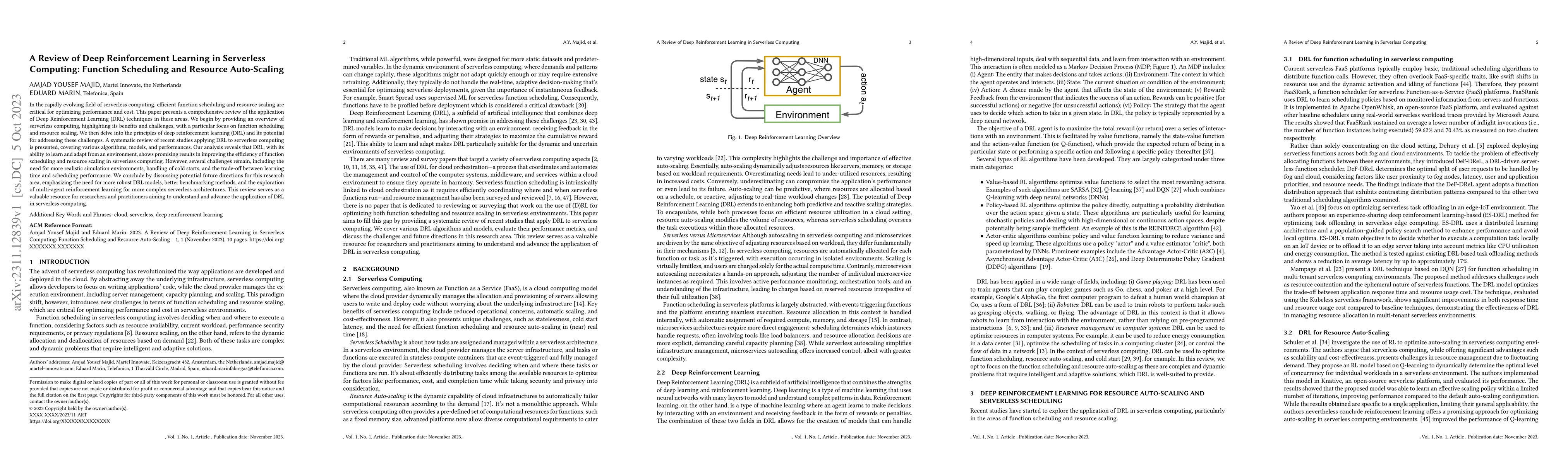 This paper reviews the application of Deep Reinforcement Learning (DRL) in optimizing function scheduling and resource auto-scaling in serverless computing, highlighting the potential of DRL to improve efficiency despite existing challenges. It emphasizes future research directions focusing on more robust models and multi-agent approaches.