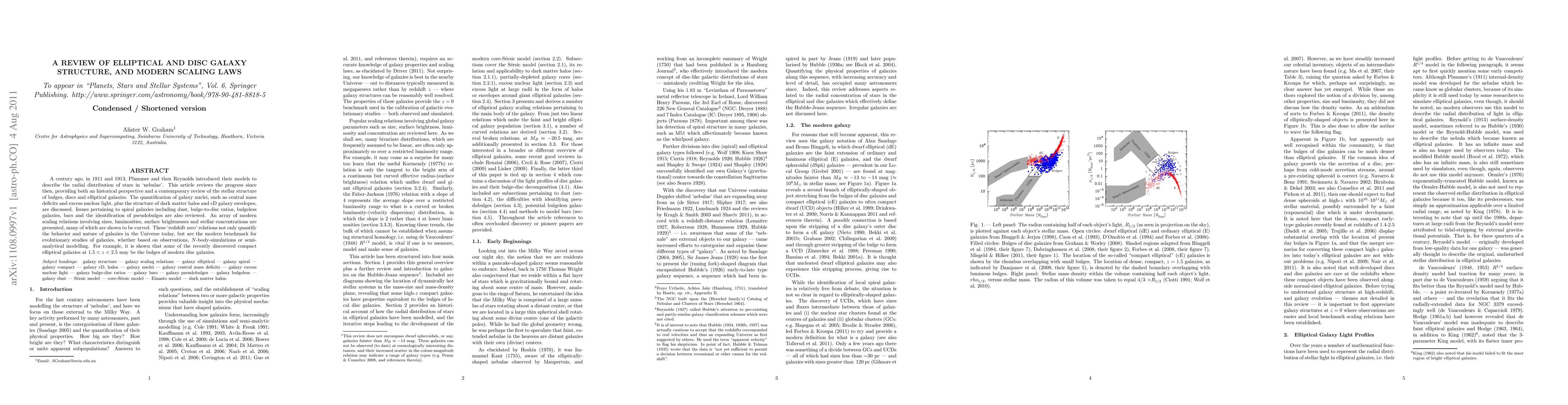 This paper reviews the evolution of galaxy structure models from early 20th-century theories to contemporary understanding, focusing on elliptical and disc galaxies, and their scaling relations. It discusses modern insights into galaxy nuclei, dark matter halos, and spiral galaxy components, alongside the curved scaling laws that benchmark current galaxy studies.