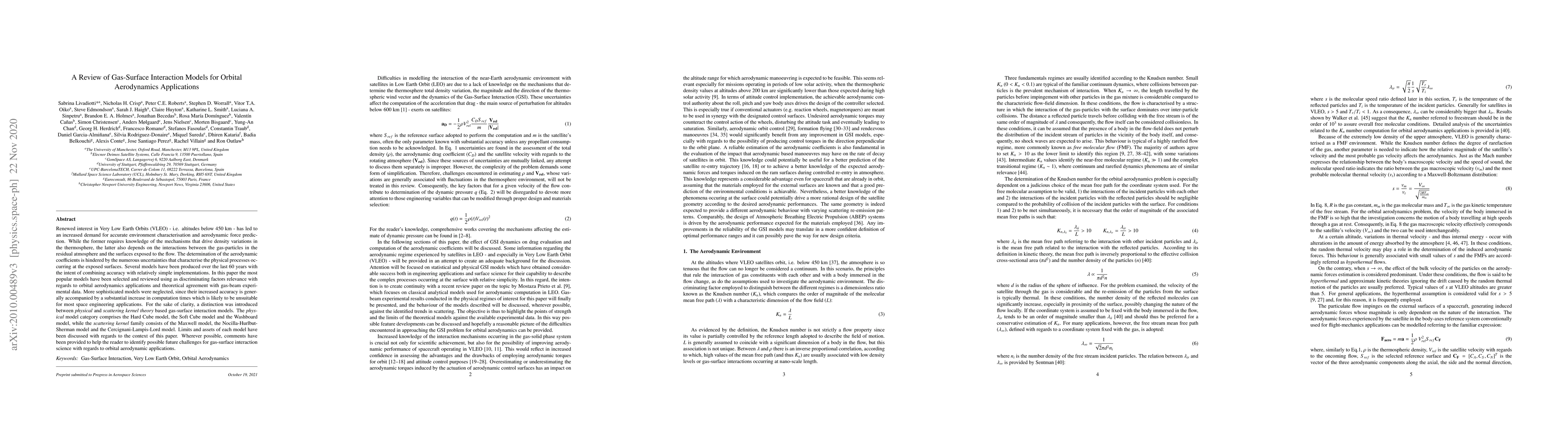 This review offers a focused analysis of GSI models specifically for orbital aerodynamics applications, distinguishing it from broader gas-surface interaction studies by emphasizing computational efficiency and practical applicability in space engineering.