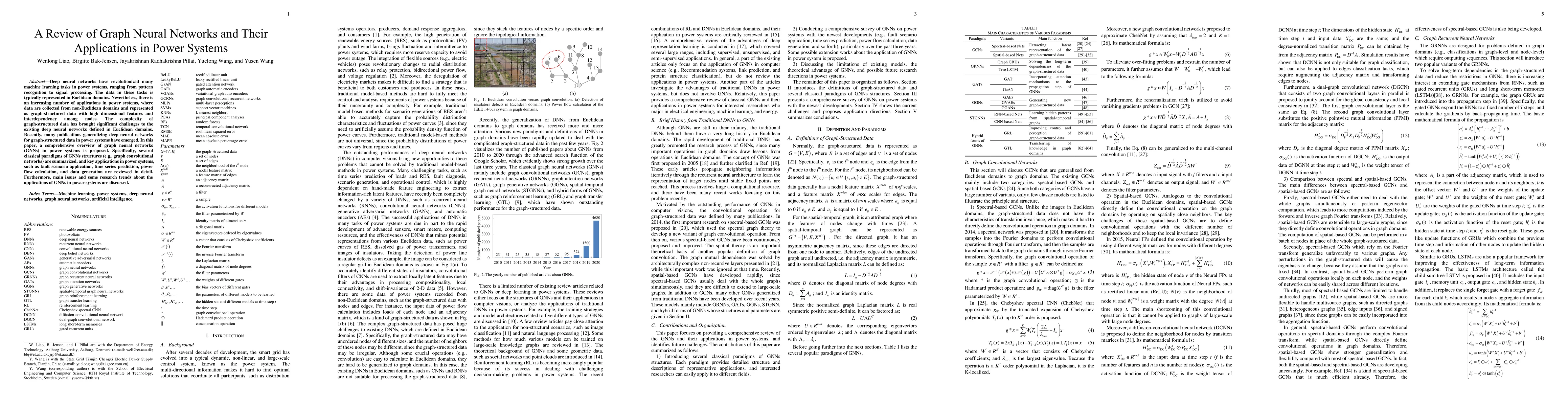 This paper provides a comprehensive overview of graph neural networks (GNNs) in power systems, summarizing classical GNN structures and reviewing their applications in fault detection, time series prediction, power flow calculation, and data generation. It also discusses current challenges and future research trends in this domain.