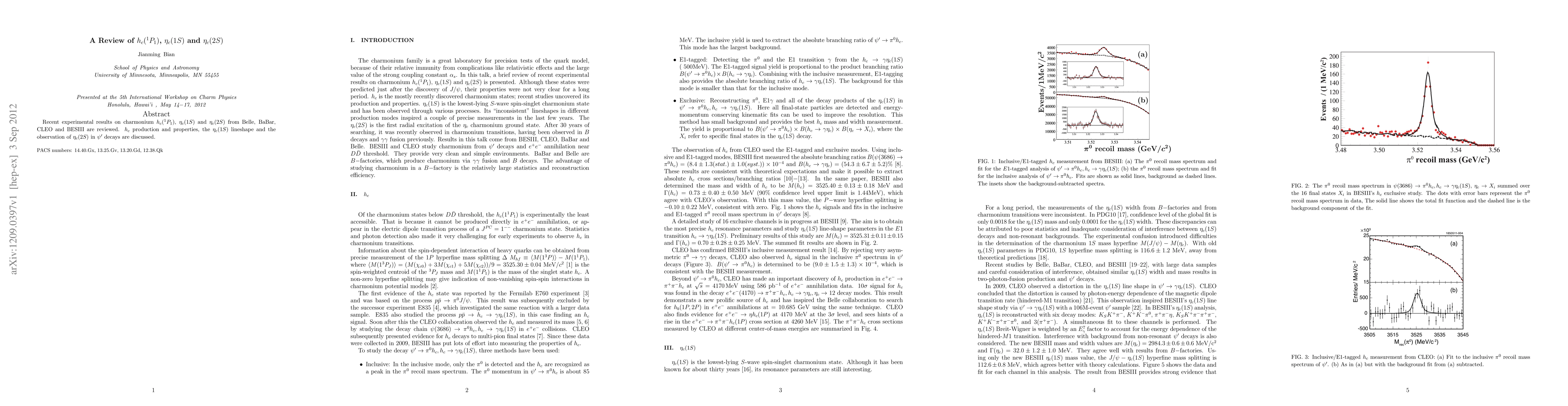 Recent experimental results on charmonium $h_c(^1P_1)$, $\eta_c(1S)$ and $\eta_c(2S)$ from Belle, BaBar, CLEO and BESIII are reviewed. $h_c$ production and properties, the $\eta_c(1S)$ lineshape and the observation of $\eta_c(2S)$ in $\psi'$ decays are discussed.