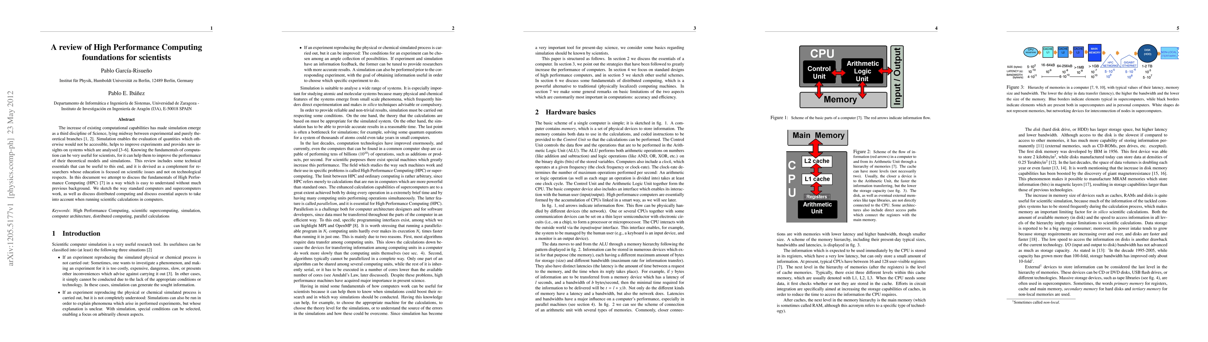 The increase of existing computational capabilities has made simulation emerge as a third discipline of Science, lying midway between experimental and purely theoretical branches [1, 2]. Simulation enables the evaluation of quantities which otherwise would not be accessible, helps to improve experiments and provides new insights on systems which are analysed [3-6]. Knowing the fundamentals of computation can be very useful for scientists, for it can help them to improve the performance of their theoretical models and simulations. This review includes some technical essentials that can be useful to this end, and it is devised as a complement for researchers whose education is focused on scientific issues and not on technological respects. In this document we attempt to discuss the fundamentals of High Performance Computing (HPC) [7] in a way which is easy to understand without much previous background. We sketch the way standard computers and supercomputers work, as well as discuss distributed computing and discuss essential aspects to take into account when running scientific calculations in computers.